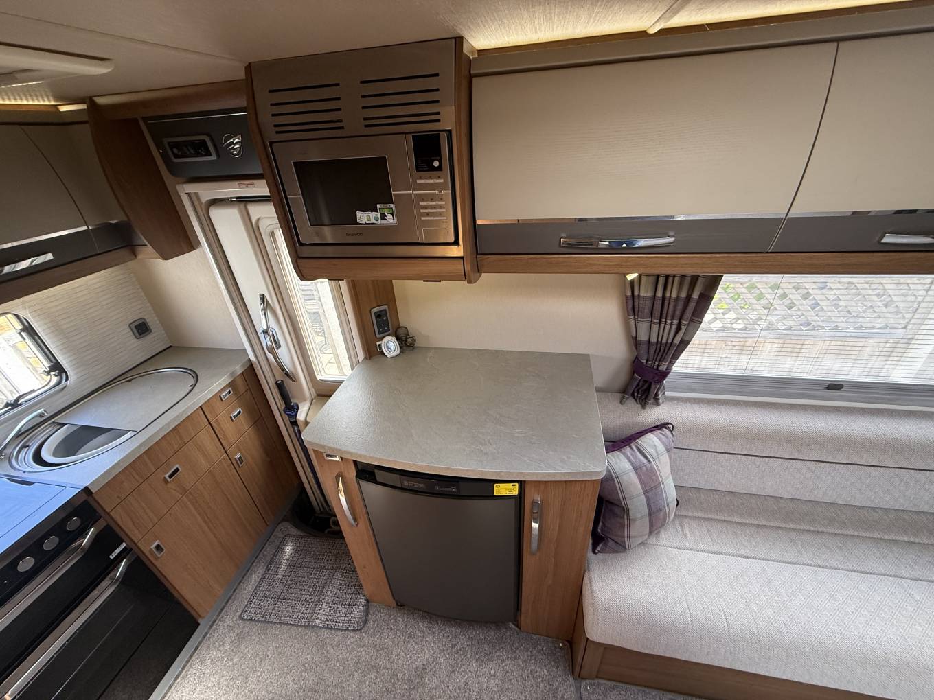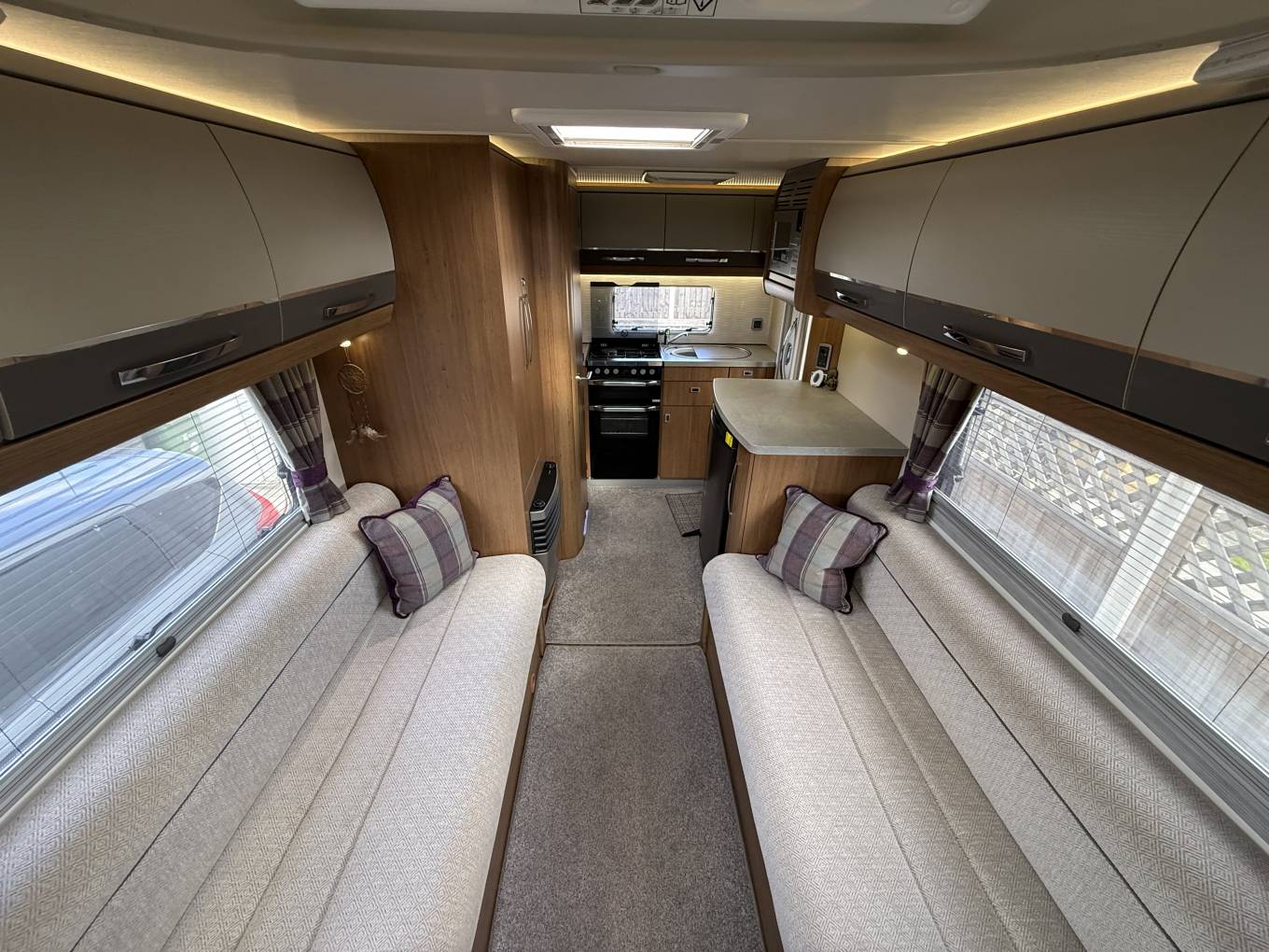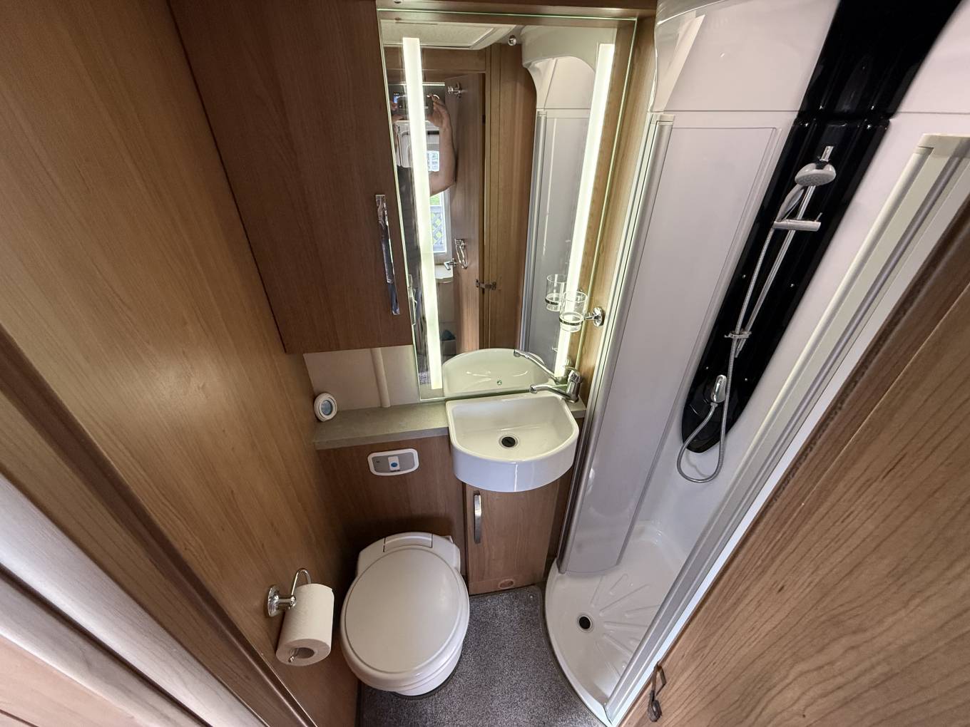 Heating and hot water are supplied by a Truma system, making this motorhome suitable for year-round use, while the swivel captain’s chairs enhance the living space and add to the overall versatility. Storage has been cleverly considered throughout, allowing you to bring everything you need without feeling cramped.