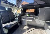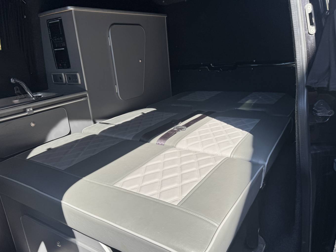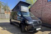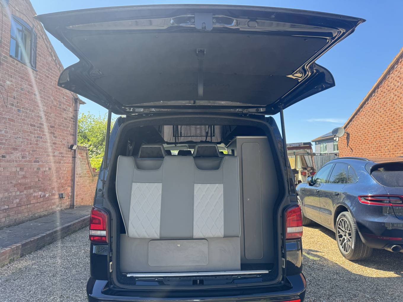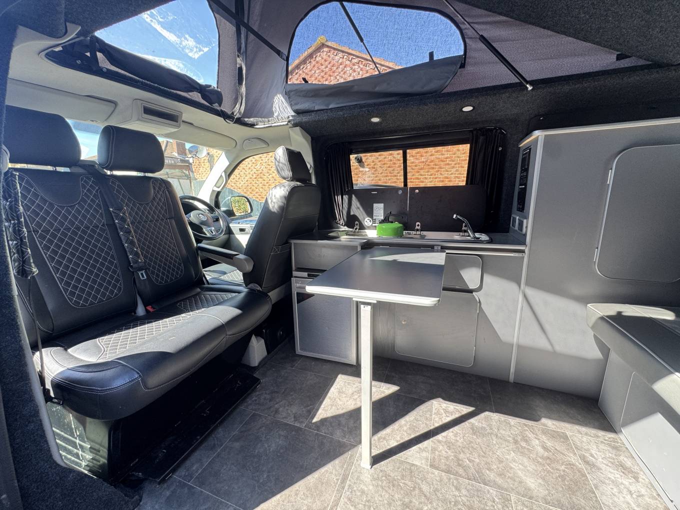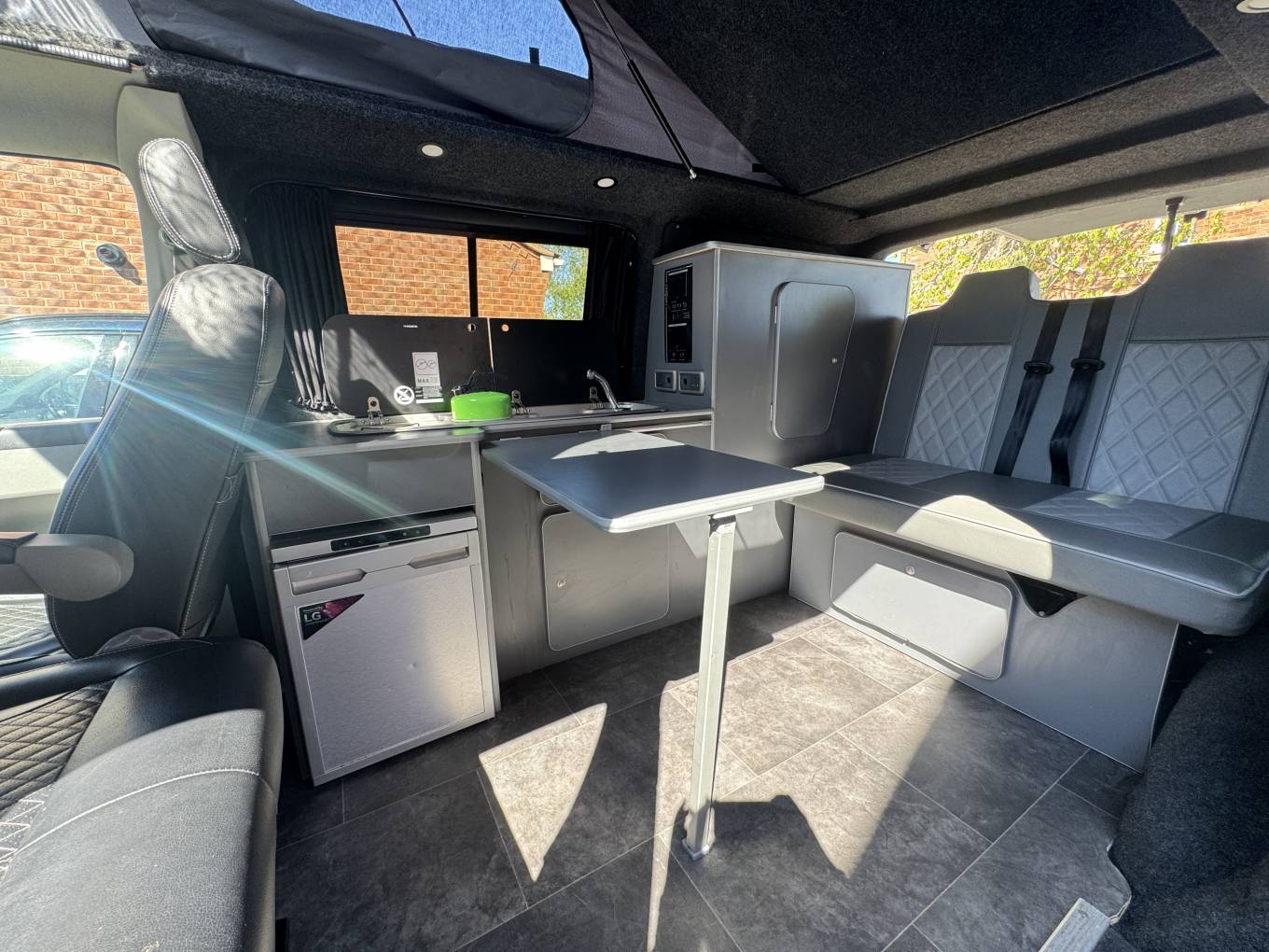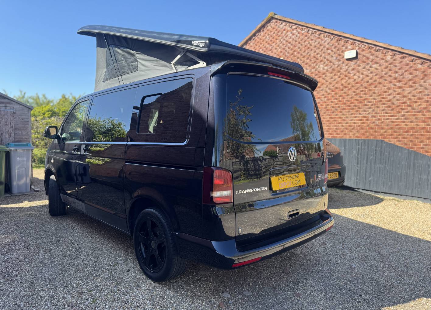 Finished in black with Sportline styling it is complemented by black alloy wheels and subtle exterior detailing. The pop-top roof is neatly integrated and provides additional sleeping space, adding to the overall practicality of this campervan.