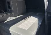 Inside, the layout is designed to make the most of the available space. The front features swivel captain’s seats, allowing the cab area to open into the living space when parked. The rear is fitted with a rock ‘n’ roll bed which converts from seating into a sleeping area for two.