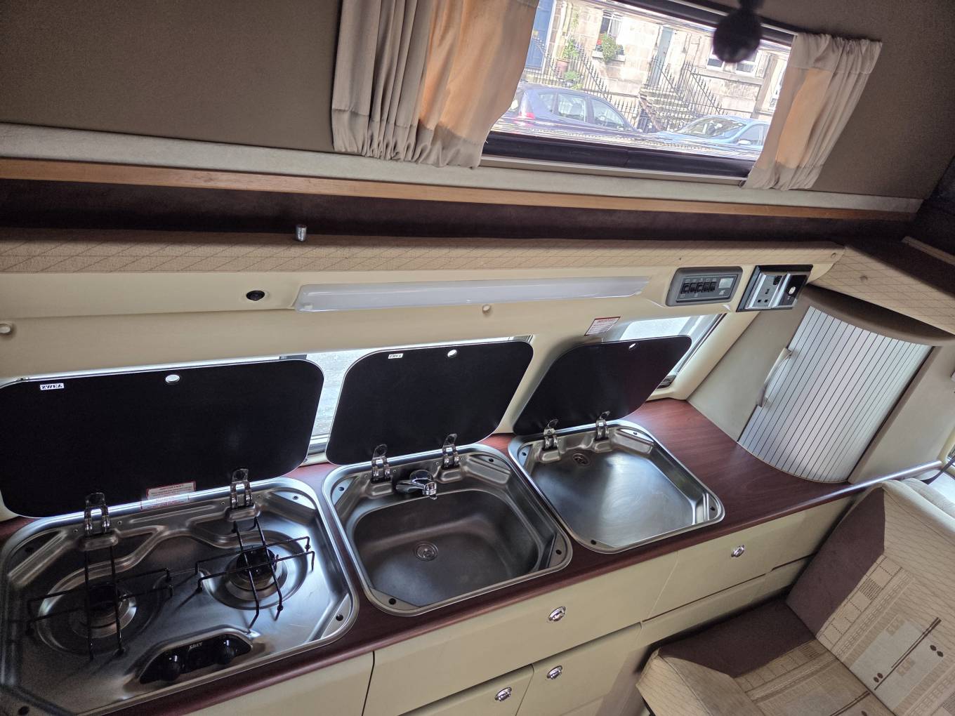 This 4 berth camper has 4 seat belts and offers a classic combo of retro style, functionality, and high-quality materials, making it an ideal choice for those who seek a reassuring and reliable travel experience on the road.