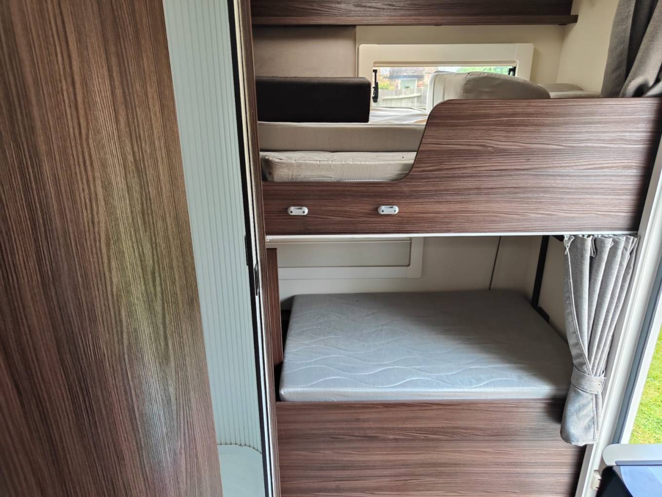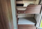 This is an excellent example of the super Benimar Mileo 323. This 6 berth, 6 seatbelt model features twin bunks to the rear with the option of using the lower bunk as a garage, twin dinettes to the front that also convert to beds and a spacious double above the cab. The Mileo range is a great spec model and this example includes the following over and above standard. Awning, reverse camera, solar panel, alloys and a 4x cycle rack. This motorhome is plated at 4400kgs which means it has a fantastic payload but you will need a C1 licence. Based on the popular Fiat Ducato cab with an ALKO chassis which has a 6 speed manual gearbox, cruise control, cab aircon and 150bhp. This van will include as part of the sale, a new timing belt and water pump, a new engine service and a new MOT plus a new habitation test. Based in Kent and more pictures available.