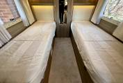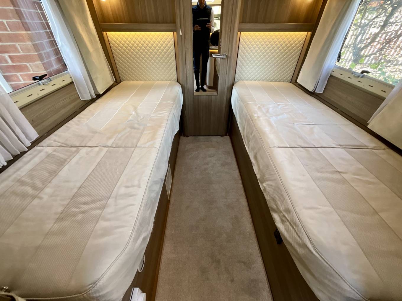 To the rear, the single beds are comfortable and spacious, and allow plenty of storage underneath.