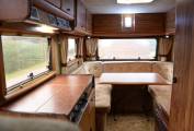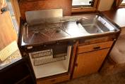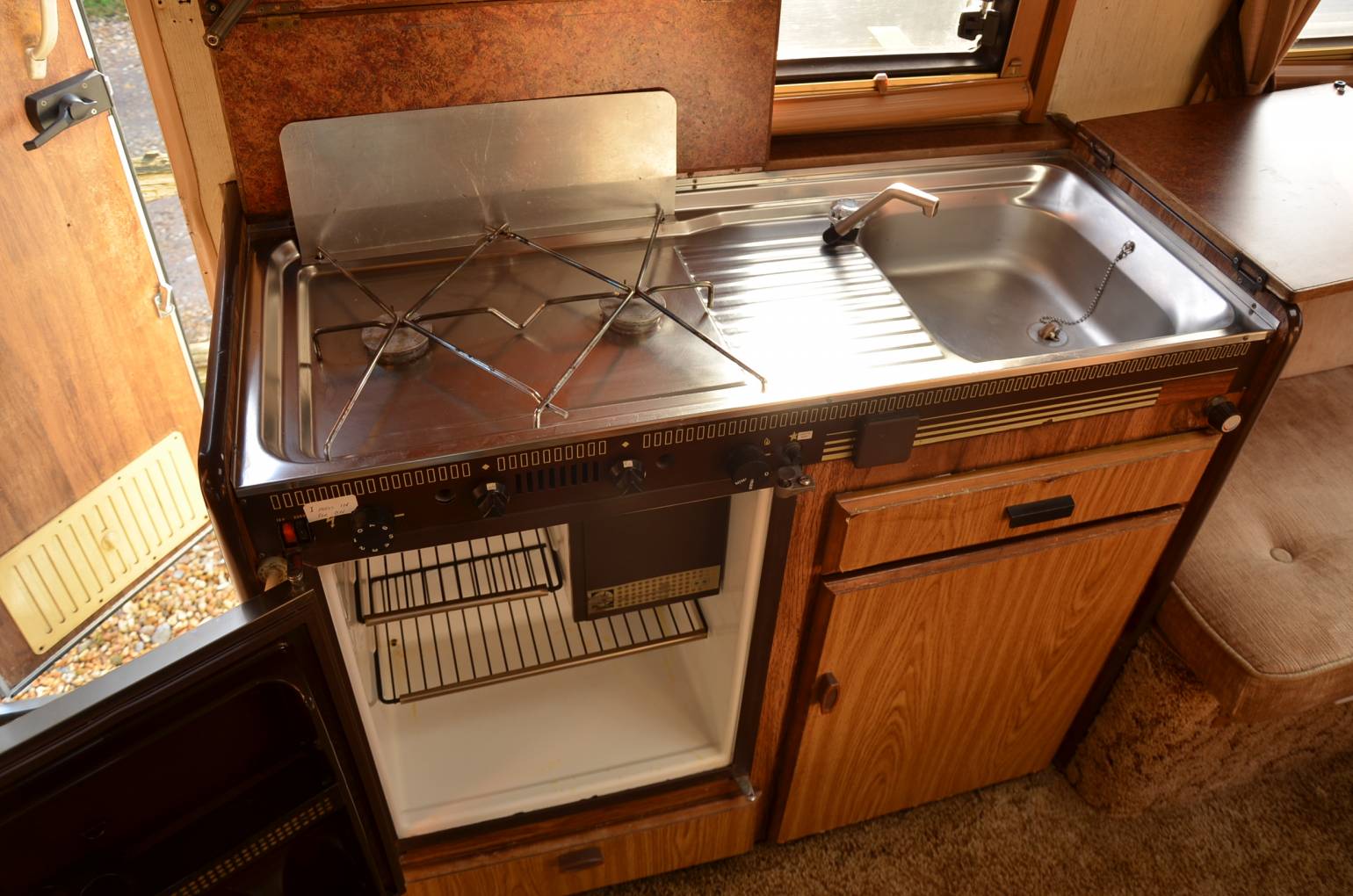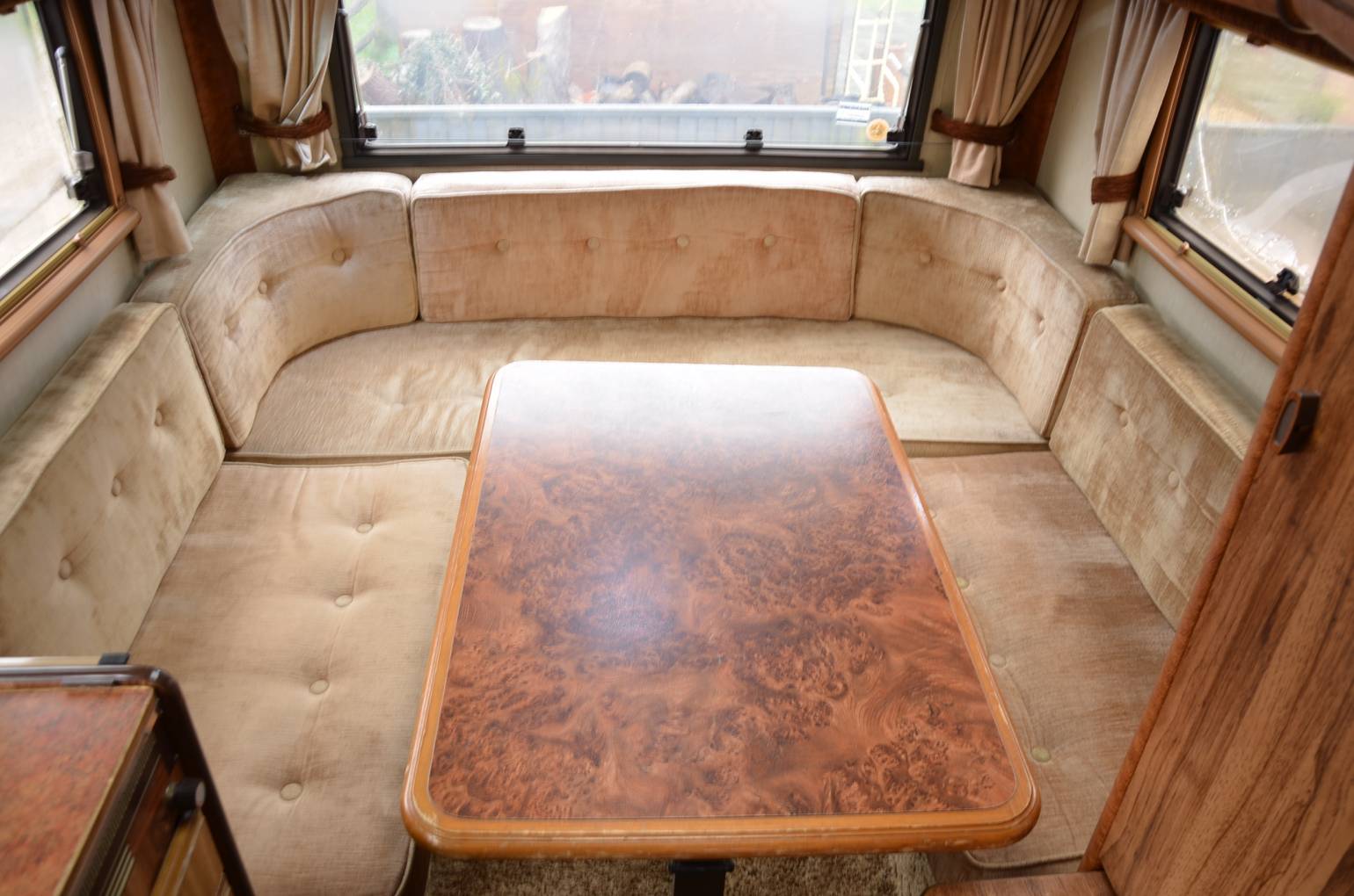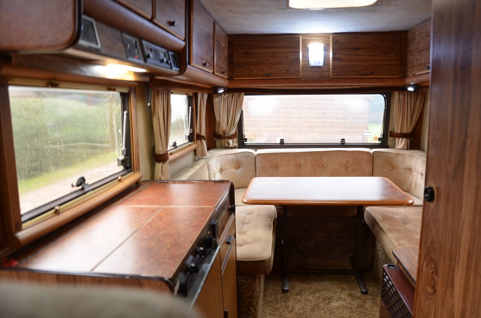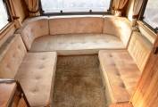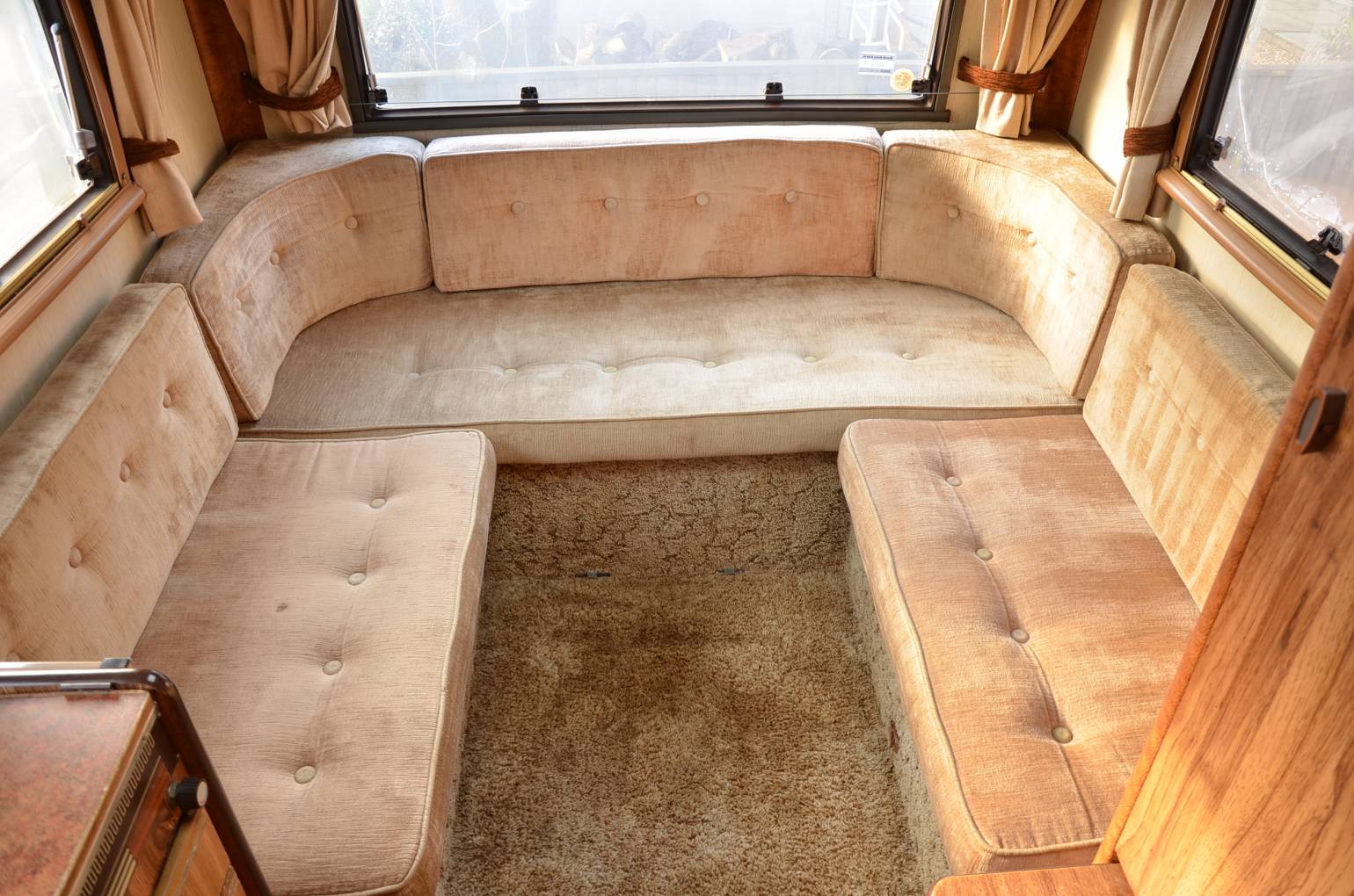 This left hand drive 1983 Brownie S550 motorhome comes complete with dark brown wood, deep-pile carpet and Amtico-style bathroom décor, much akin to how it appears in the original brochure. The popular U-shaped seating area converts to a very large bed and over-cab is another double. There is a 2-ring gas cooker, Truma heater and Electrolux fridge. A Solar panel is also included. With its age come a few related foibles - one of the side windows is cracked (but still water tight), a skylight needs re-sealing and the drop down bed needs new struts for raising and lowering. There is a Scooter rack for two motorbikes. The Mercedes 2.4 4-cylinder diesel engine has nearly (207000km) 129000 miles on the clock. MOT with no advisories to 15 March 2020.