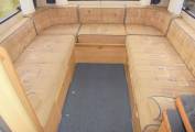 Layout is overcab double bed. Central kitchen. Central dining area which converts to double bed. Washroom. Rear U shape lounge which converts to large double bed.