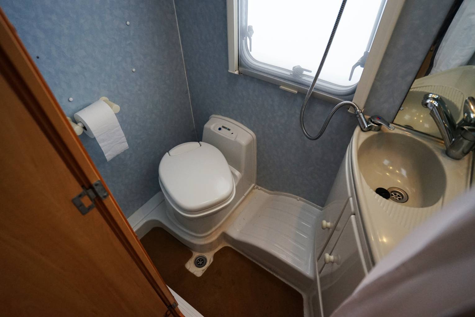 Central washroom with a shower, wash basin thetford Cassette Toilet,