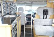 Opposite this is the dining/Activities area which has two forward facing three point seat belted travelling seats & two rear facing seats with the outer seat having a lap belt, this area also breaks down into a large double bed. The cab side of this motor home has electric windows, Original CD radio, Four way electric door mirrors & above the cab also has a good size double bed.
