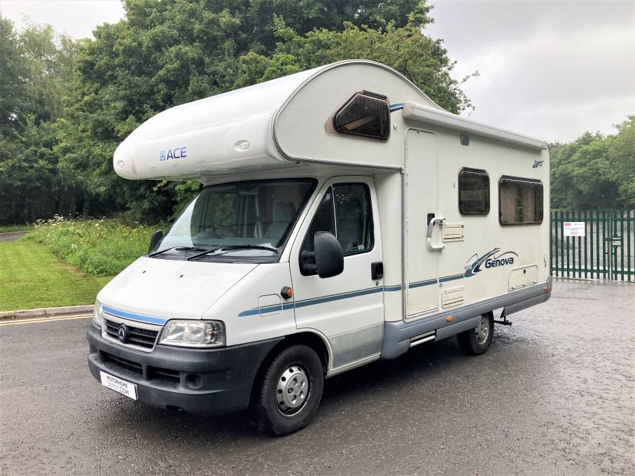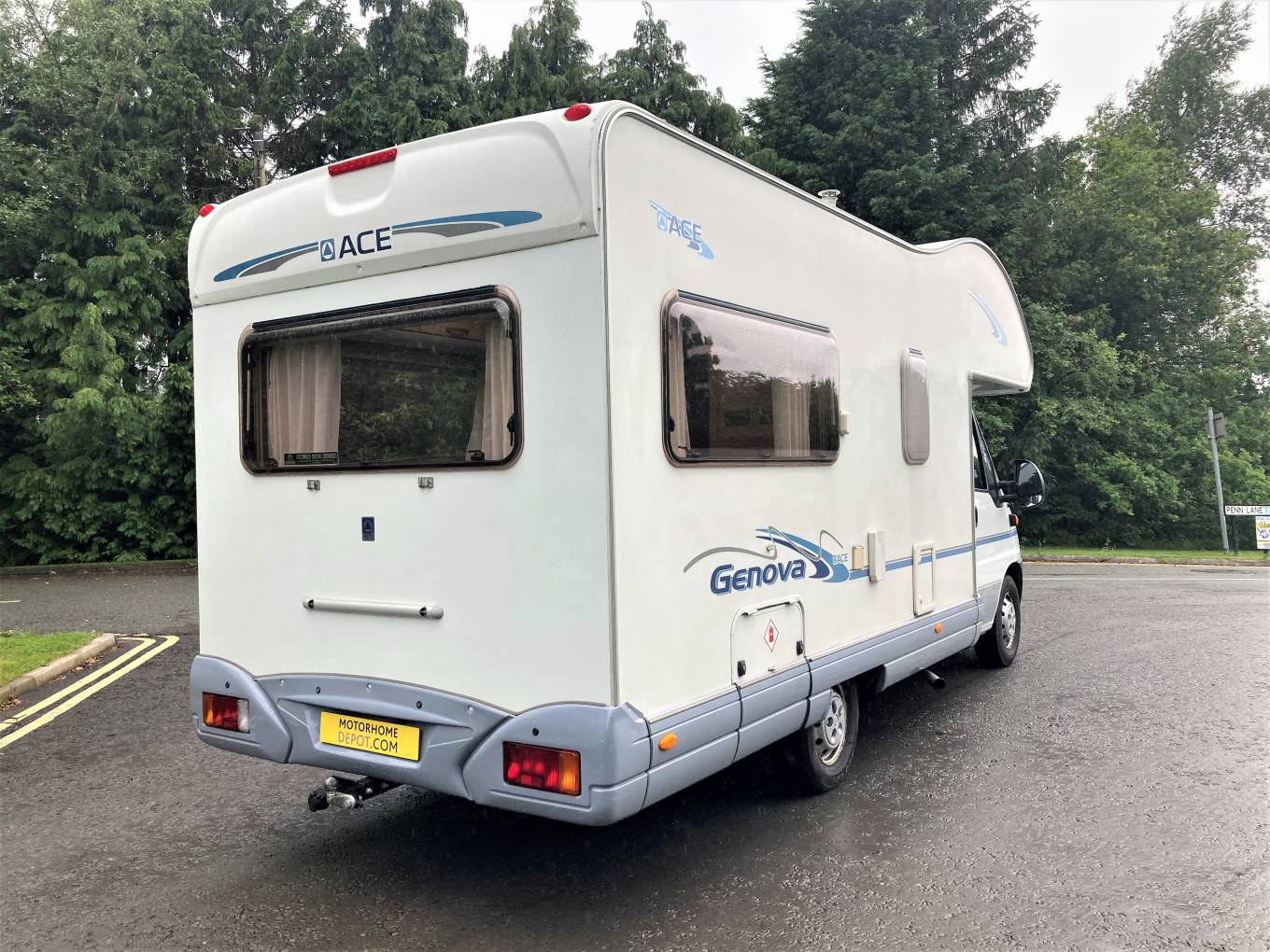 Occasionally a unique value for money motorhome comes our way and this 4 berth exceptionally low mileage end ' U ' shape lounge Ace Genova is exactly that.