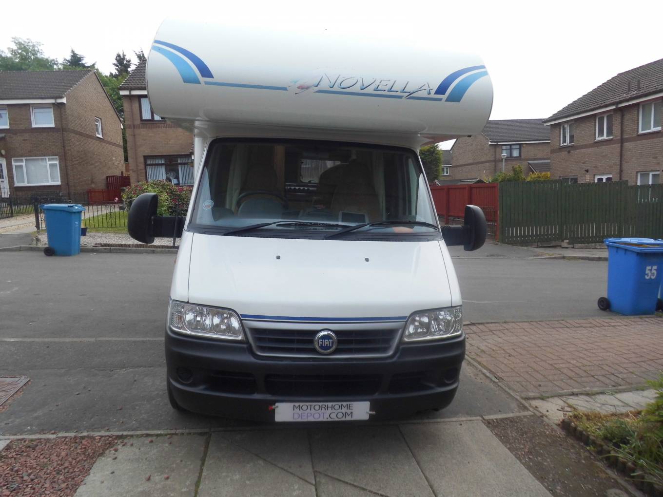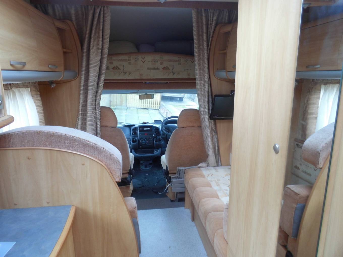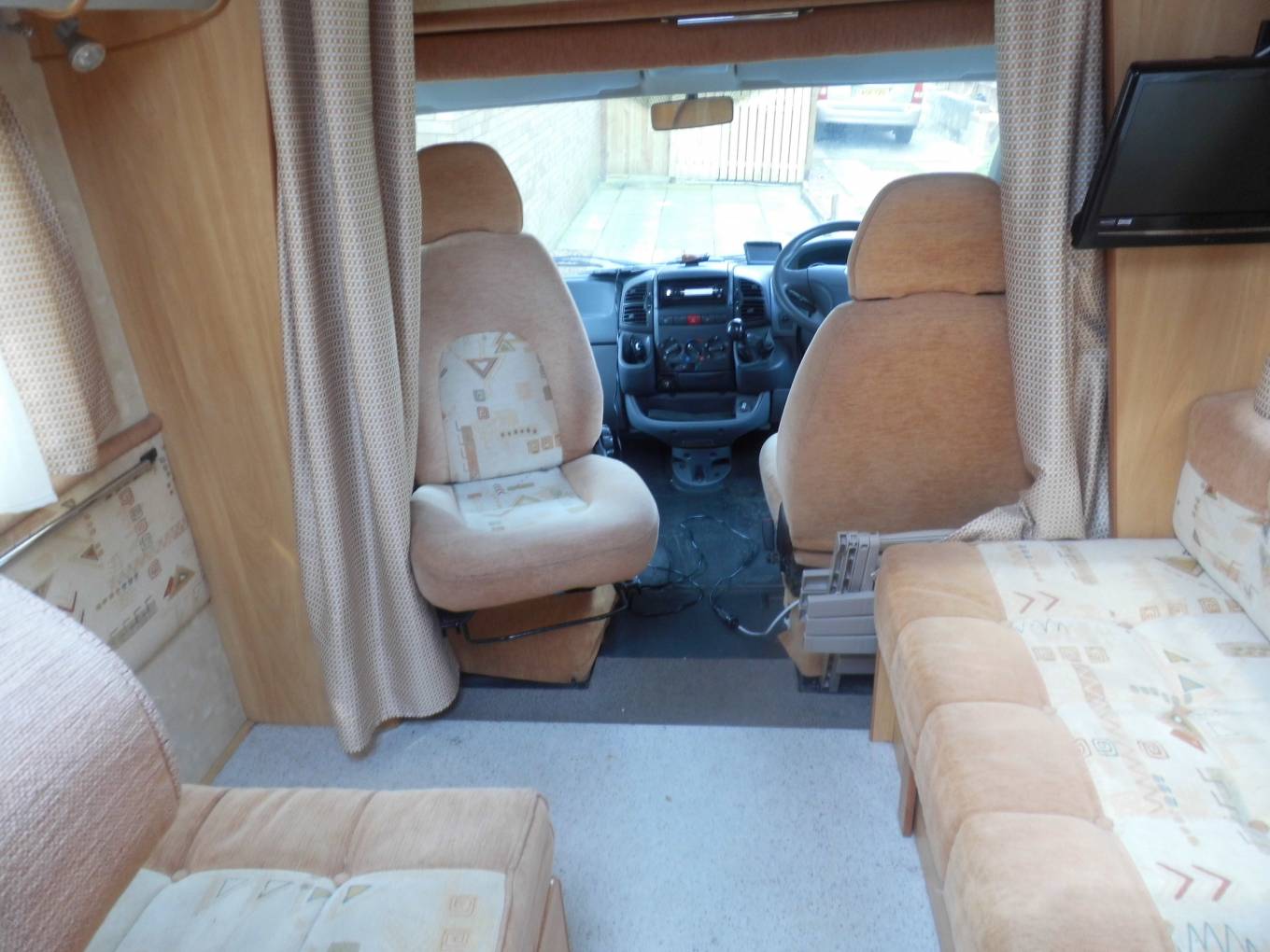 We are presenting an Ace Novella Torino 4 berth motor home for sale. This motor home has been looked after very well. The centre lounge consists of a bench seat and 2 forward facing fitted with travelling belts allowing 4 adults to travel with ease. Also the centre dinette has a removable table and the front passenger captains chair swivels round for comfortable dining. The end kitchen has a 4 burner gas hob with a combined oven and grill below, kitchen sink and a 3 way fridge. There are a number of cupboards for storage. The centre lounge area changes to a double bed, along with the large over head cab double bed with ladder. The washroom consists of wc, wash hand basin and shower. Other items are solar panel, reversing camera, alarm. The body work is in very good condition apart from faded stickers. For more information please call one of the team on 01623 900 063.