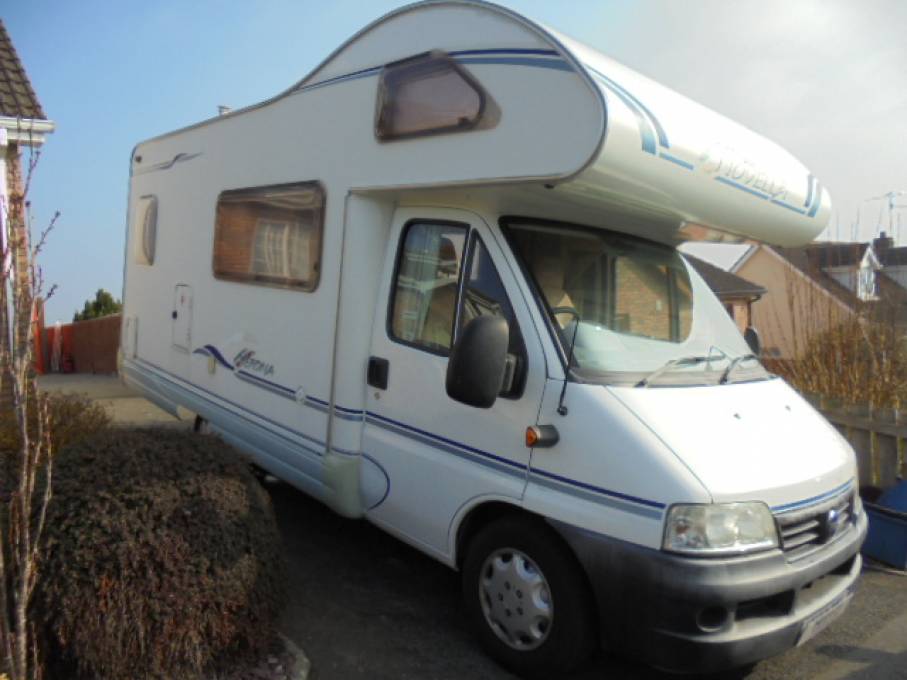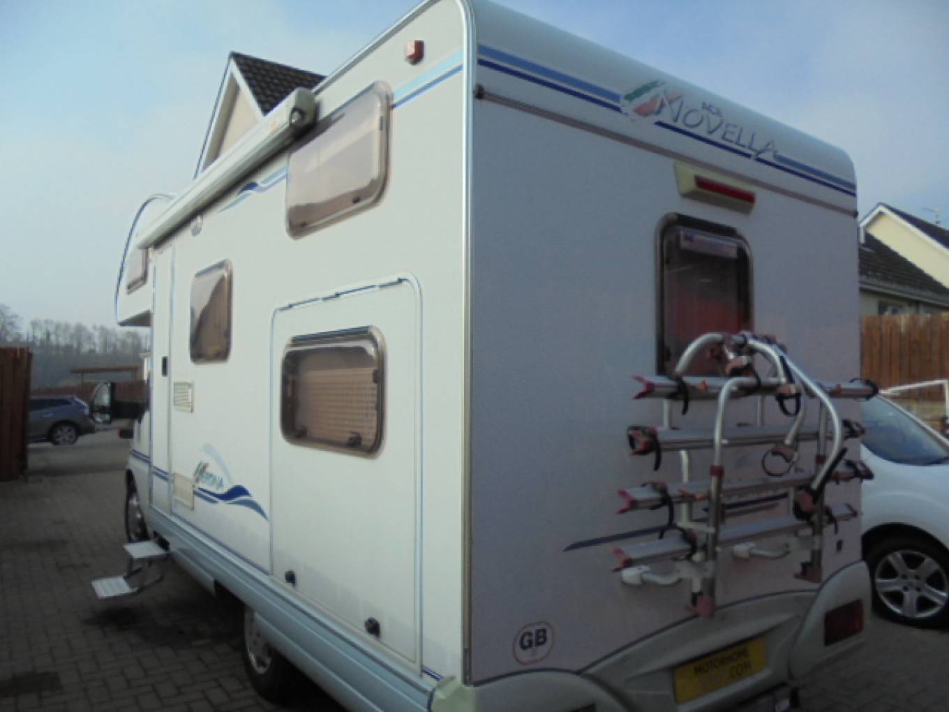 2003 Ace Novella Verona 6 Berth Motorhome For Sale. Based on the Fiat Ducato chassis with a 2.2 JTD engine and 5 speed manual gearbox, mileage at present is 44205 and it is MOT'd until May 2019. Length is 6.1m, width is 2.22m and max weight is 3400kg. Presented in good condition thie motorhome is spacious and has 4 travelling seat belts. The cab has 1 fixed and 1 swivelling height adjustable captains chairs, Readio/CD player, Central Locking and electric windows and mirrors. The fully equipped kitchen has sink/drainer, 4 burner hob, grill, oven and 3 way fridge. Opposite is the front dinette which also converts into a double bed. Further sleeping arrangements are provided by the overcab double bed and the rear side bunks.. The bathroom has WHB, swivel cassette toilet and overhead shower with curtain. Lots of storage throughout in overhead lockers and cupboards along with a wardrobe and extra space under the bunk which can also be accessed from the outside. Other extras include wind out canopy, bike rack, tow bar and digital plus amplifier/aerial. FINANCE AVAILABLE SUBJECT TO STATUS. For more information, extra photographs and to arrange a viewing please call Mark on 07715220807. VIEWING STRICTLY BY APPOINTMENT ONLY. Motorhome located in Co Armagh. Low Cost Delivery to UK Mainland.