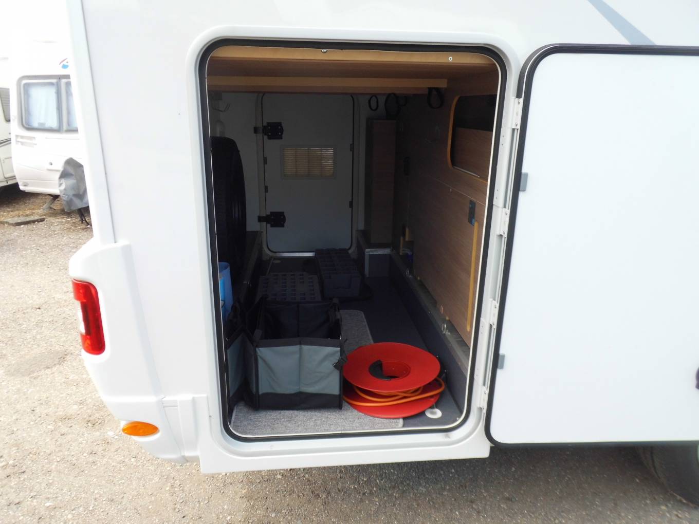 Externally there is a wind out awning and the large garage means that you can load up and go touring for months if you want to.