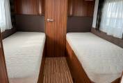 Sleeping is via the Rear Twin Single Beds ( which can adjust resting position ) a great layout that allows for Comfortable Sleeping and also easy access to the rest of the van if required. The Dinette Area also converts to make an additional Single Bed