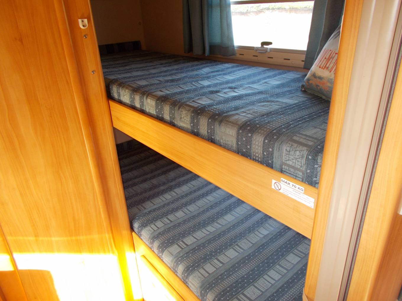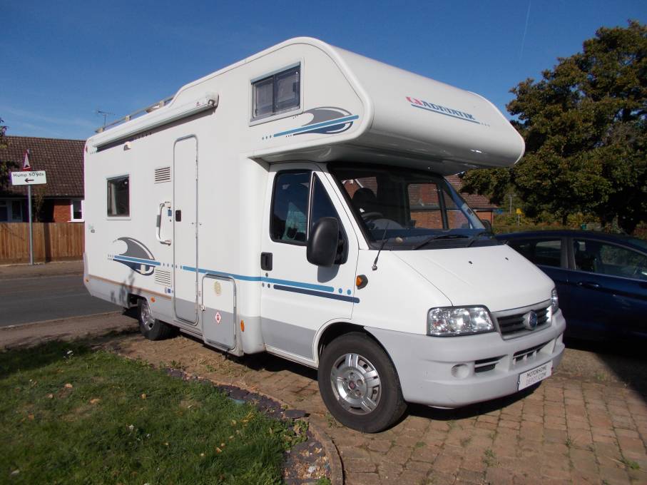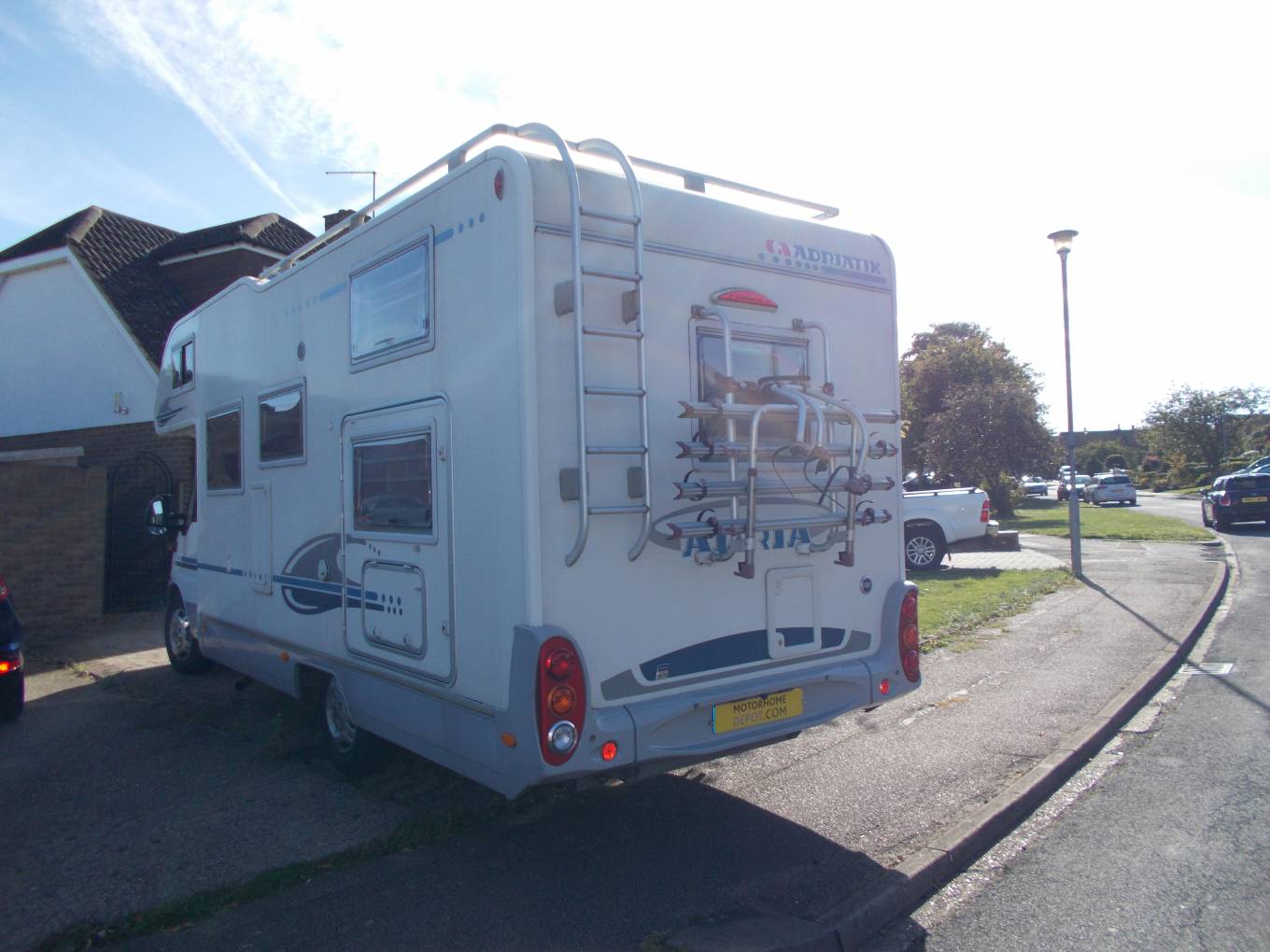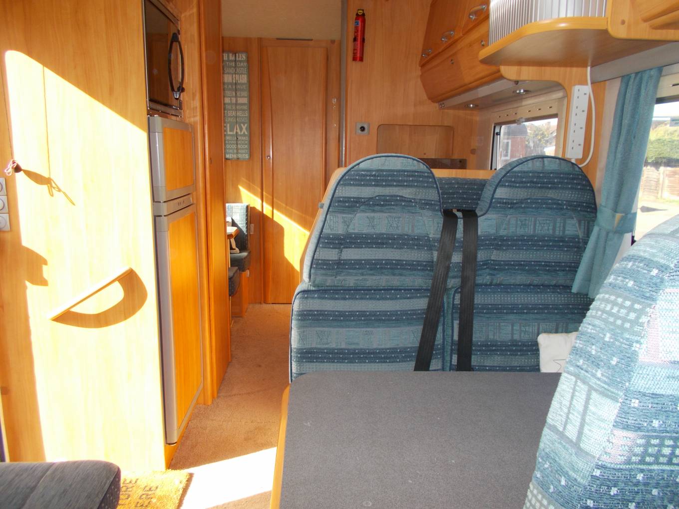 A fantastic Adria Coral 670 SK 6 Berth family Motorhome with four traveling seats built on a Fiat Ducato chassis. Wow, here we have a superb quality family Motorhome with a very rare configuration. Consisting of rear bunk beds with a small dinette opposite and a front dinette with swiveling captain's chairs this model really is one not to be missed. Up front we have a powerful 2.8 litre JTD diesel engine delivering power through a 5 speed manual gearbox. Electric front windows and door mirrors, reversing camera monitor, radio CD player and two swiveling captain’s chairs. The centre dinette has a further 2 belted seats and a removable table. The “L” shaped galley kitchen is well equipped with a three burner hob, sink, Smev oven, large fridge freezer, extractor hood and a flush waste bin. To the rear we find a spacious washroom with Thetford swivel toilet, hand basin, vanity cabinet and shower with folding door. Other equipment includes a large sunroof, blinds and insect screens to the windows, smoke alarm, fire extinguisher, removable carpets, sunroof, blown air heating, two flat screen TVs with DVD players and additional speakers to the habitation area. Moving outside via a powered step there is a Fiamma awning, toilet cassette, side locker, bike rack, roof ladder, roof rails, Status TV aerial and a large garage. Garage door opening is 1150 x 1150. Bunk beds are 1850 x 700. Over cab bed is 1300 x 2050. Thatcham Cat 1 alarm fitted. Last service completed 31-08-2016, MOT to August 2019 with no advisories. Low mileage of only 33828. For further information and extensive photos please call Alan on 07525 841 632 or 01327 844 790. This clean and tidy family Motorhome is located in Dunstable LU5.