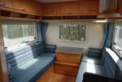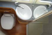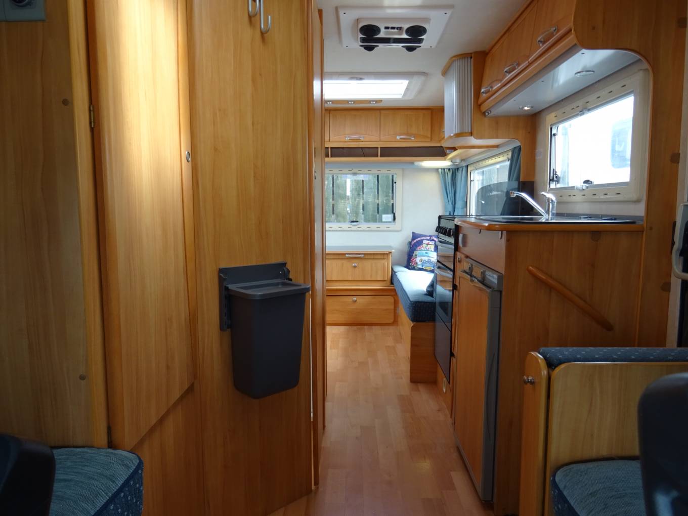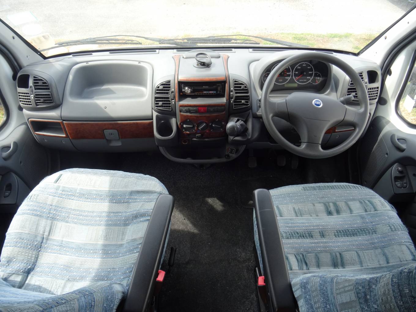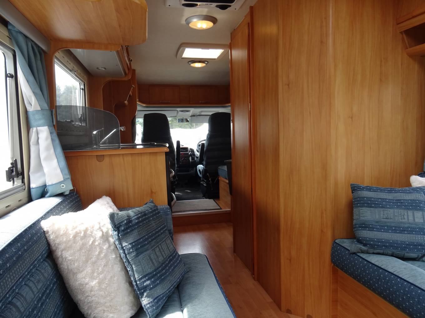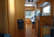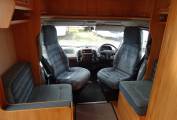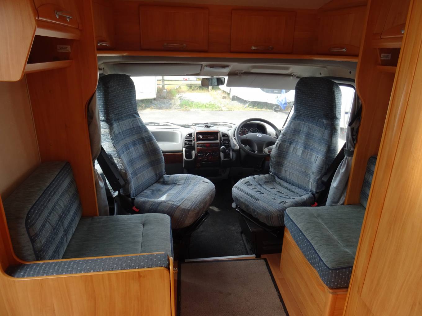 Up front there are electric windows and wing mirrors, arm rests, radio and a silver thermal screen cover and both front seats swivel. Behind each of the cab seats, there are opposing single seats to which a centre section can be added to form a single transverse berth. Beyond this, in the centre of the vehicle, is a large storage cupboard, followed by a bathroom featuring a toilet, hand basin, and a separately screened shower. Coming in through the habitation door, which has extra security locks, the kitchen is on the left, it has a sink and drainer, a fridge with a freezer box, a hob with four gas burners, a grill and an oven. There is also a microwave. At the rear of the vehicle is a spacious and airy leisure/dining area, flooded with natural light there is great visibility from windows on three sides and an overhead skylight. Opposing bench sofas can be converted into a double bed or used as 2 singles. Blown Air Heating, Heki Roof Light, Electric Step, 2 gas bottles, rear stabilizer arms. The end cap is missing from the wind out awning. Length: 6.8m Weight: 3500 kgs.