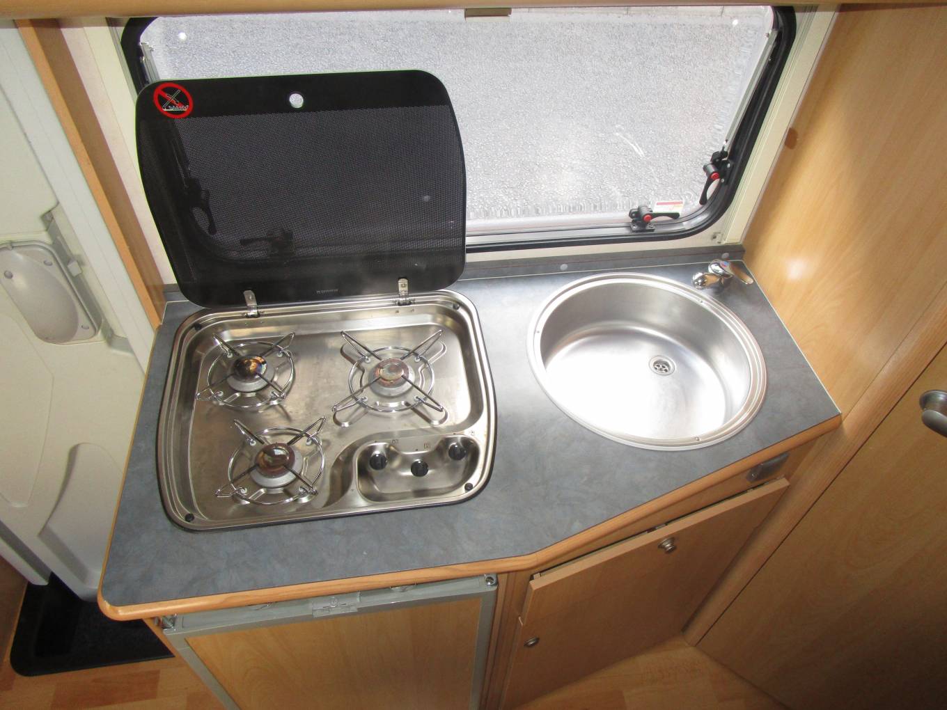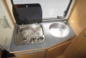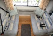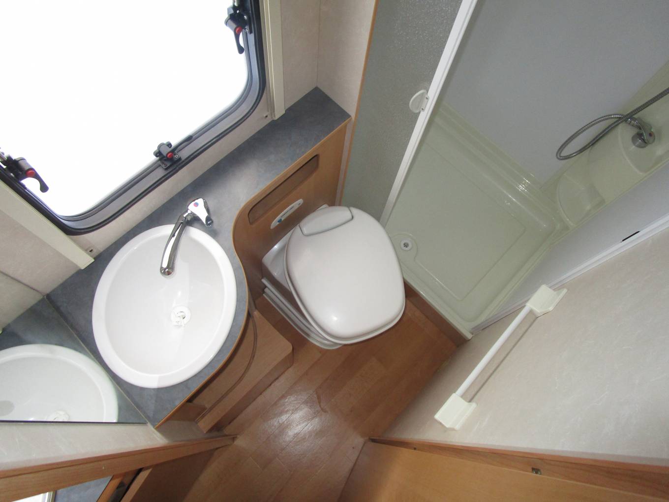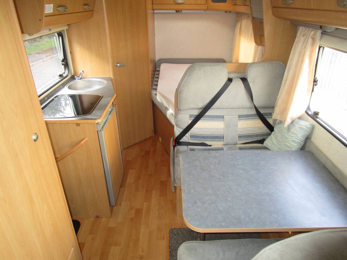 The front dinette area can easily seat 4 and the table gives ample space for four dining, the kitchen is opposite the dining area and benefits from a generous fridge with ice box, sink and 3 burner gas hob. To the rear fo the vehicle is a good sized double bed and a large washroom with seperate shower cubicle, cassette toilet and hand wash basin. There is a large amount of storage throughout the vehicle with a wardrobe to the front along with overhead storage cupboards throughout and a large area under the bed. This particular vehicle has an extensive service history and also benefits from a towbar, wind out canopy awning and bike rack.