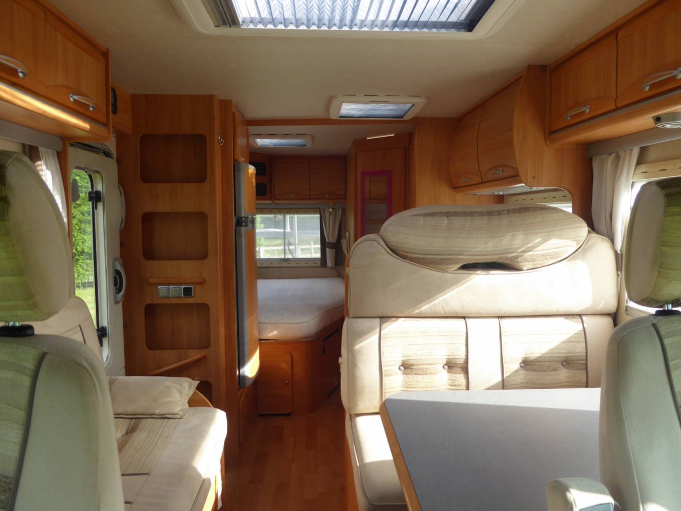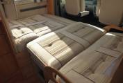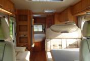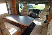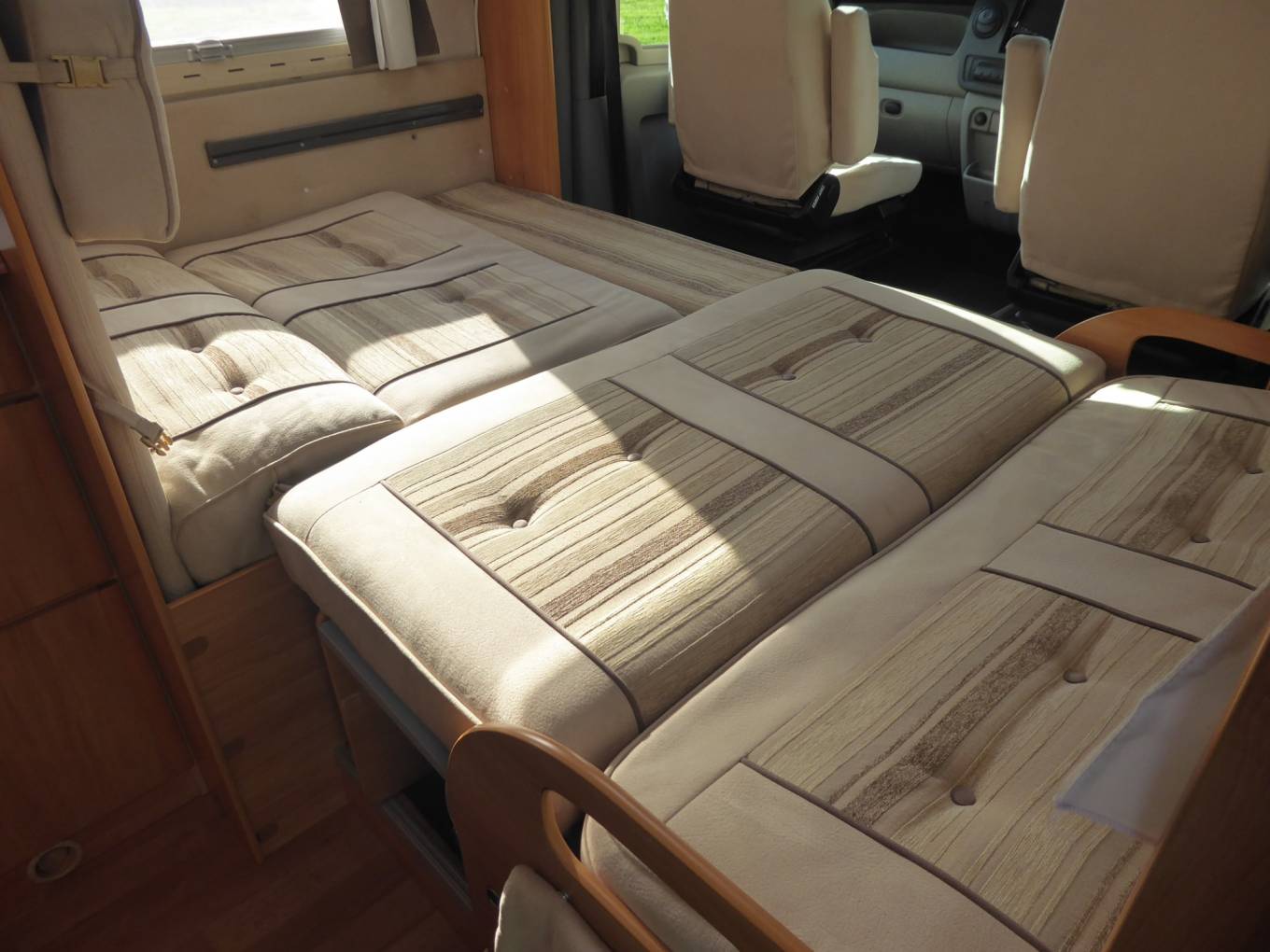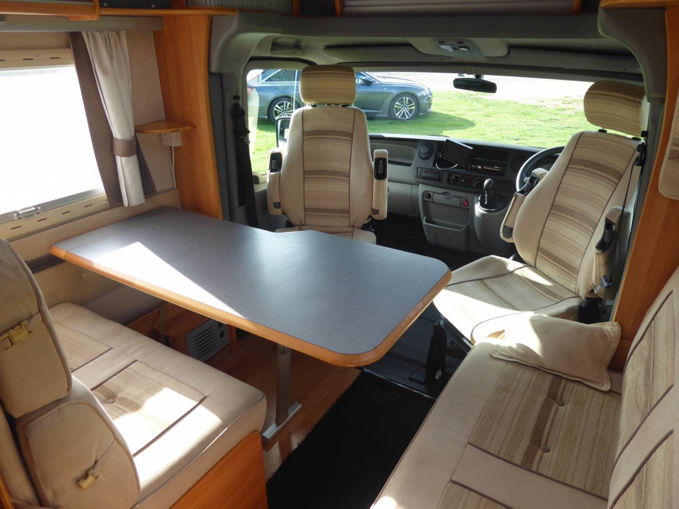 Behind the cab is a nearside half dinette with two additional forward facing 3-point seat belts. There is an adjacent offside side sofa. Swivel cab seats can be utilised to augment this leisure/dining area. The habitation seating can be converted into a double berth.