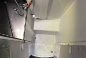 • Fully lined separate walk in shower cubicle • Shower bi-fold doors • Washbasin • Chrome mixer tap • Mirror • Medicine