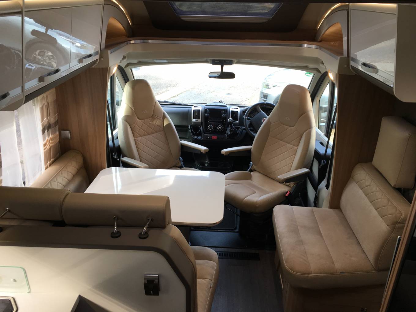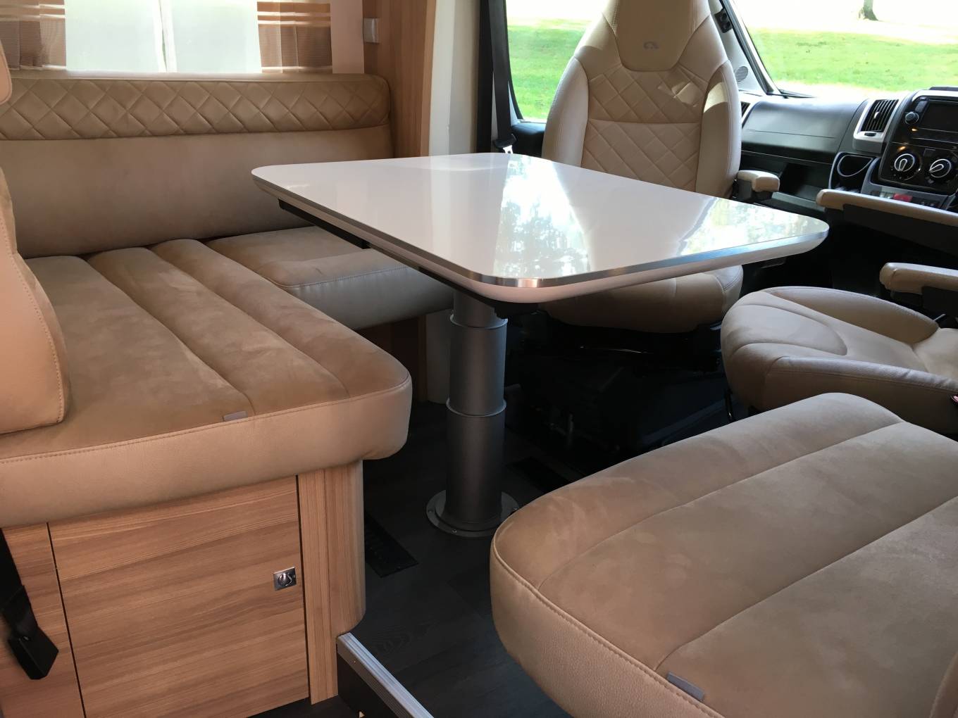 • Adjustable dining table • Avtex mounted remote control TV • LED spotlights • Overhead locker storage •