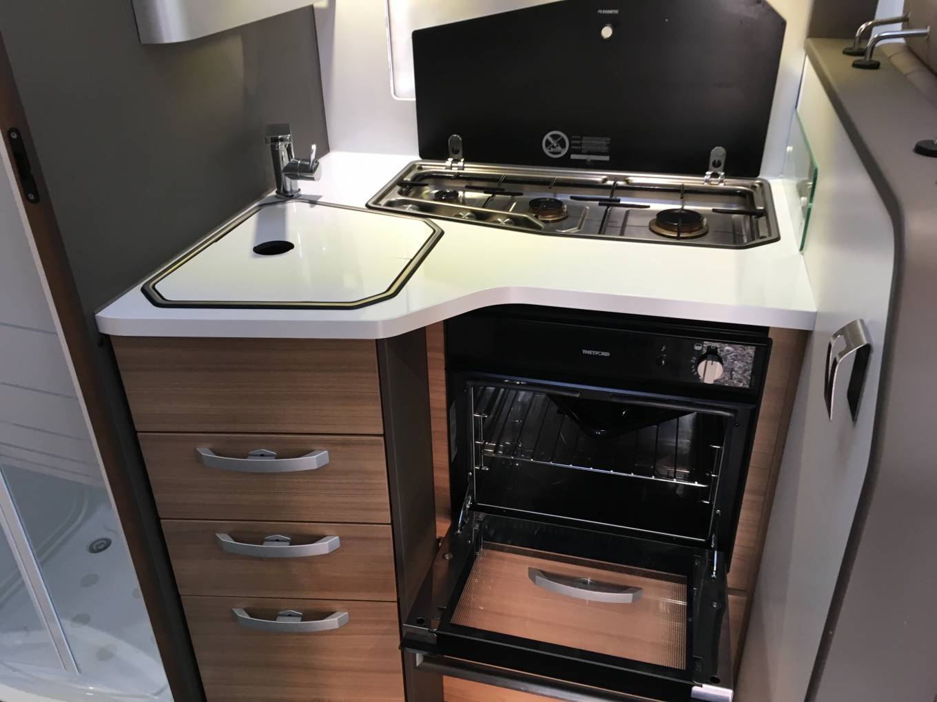 • Three gas hob burners • Extractor fan • Thetford combination oven and grill •