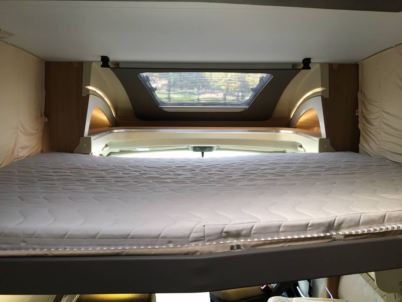 rear bed • Electrically adjustable bed height • Panoramic windows • Skylight •