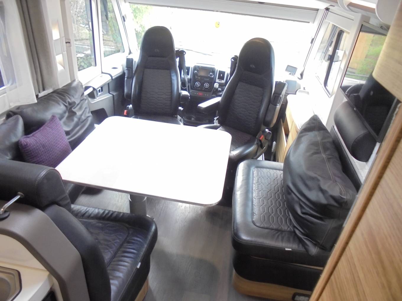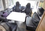 sofa and adjustable table with the 2 cab seats able to swivel round to the