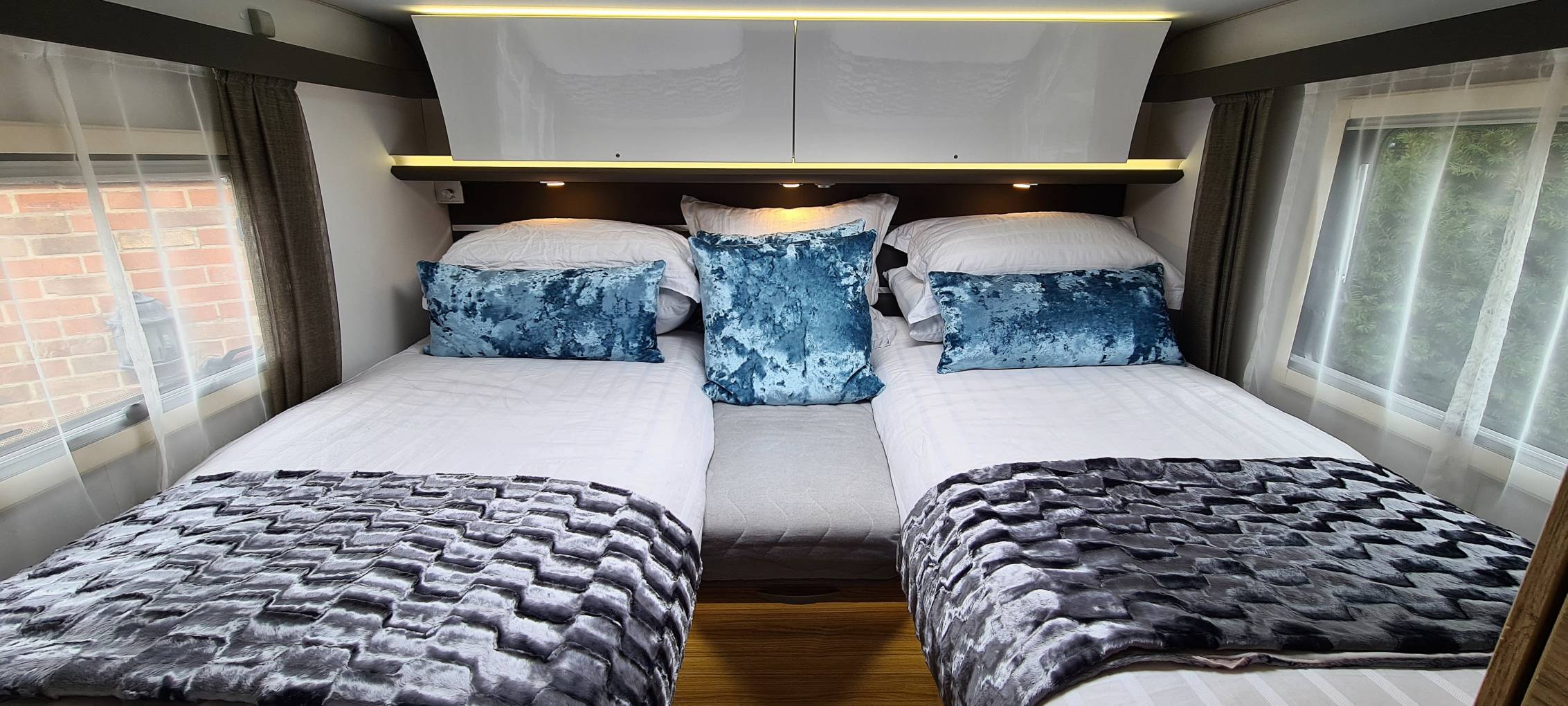 side to boot. The beds are large, measuring 1.99m/1.88m x 0.85m (6’6”/6’2” x