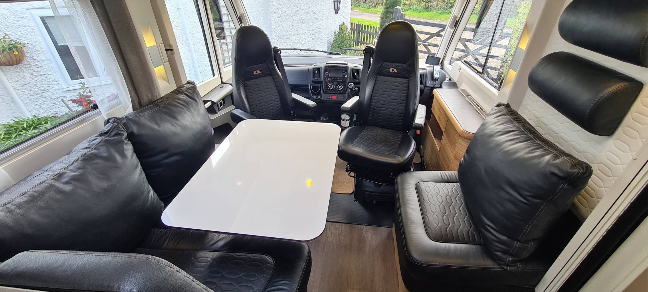 dinette and cab area, with 2 x captain chairs to make up more space around the