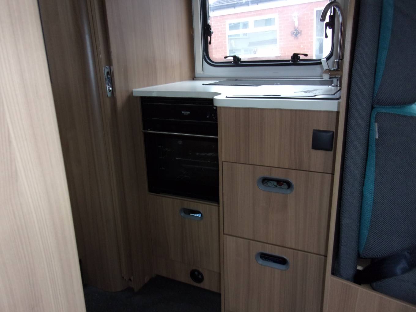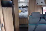 The Motorhome has the Truma CombiE heating system, providing thermostatically controlled heating and hot water. This can be powered by electric or gas. It is controlled by the dials above the fridge and is simple to operate and very effective, ensuring a warm cosy van even on the coldest of nights.