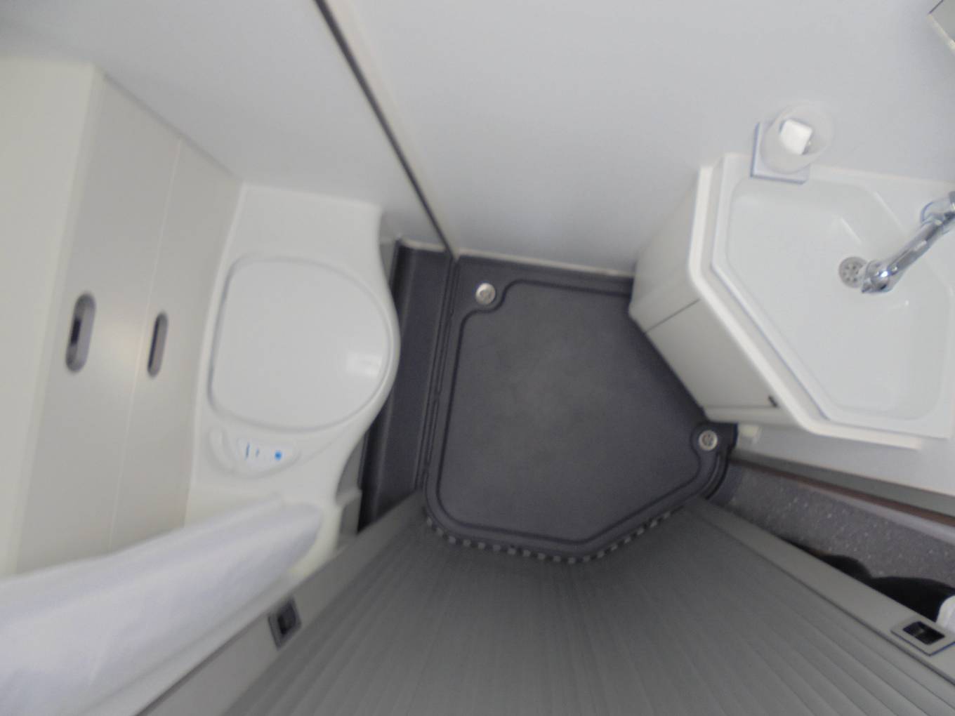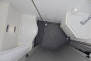The S70 DF has incredible room and storage for a 6 Berth motorhome. It has a rear fixed bed, large garage that can be accessed from outside or underneath the fixed bed and a two compartment toilet cubicle that has a revolving door to separate the toilet and the shower/wash area.