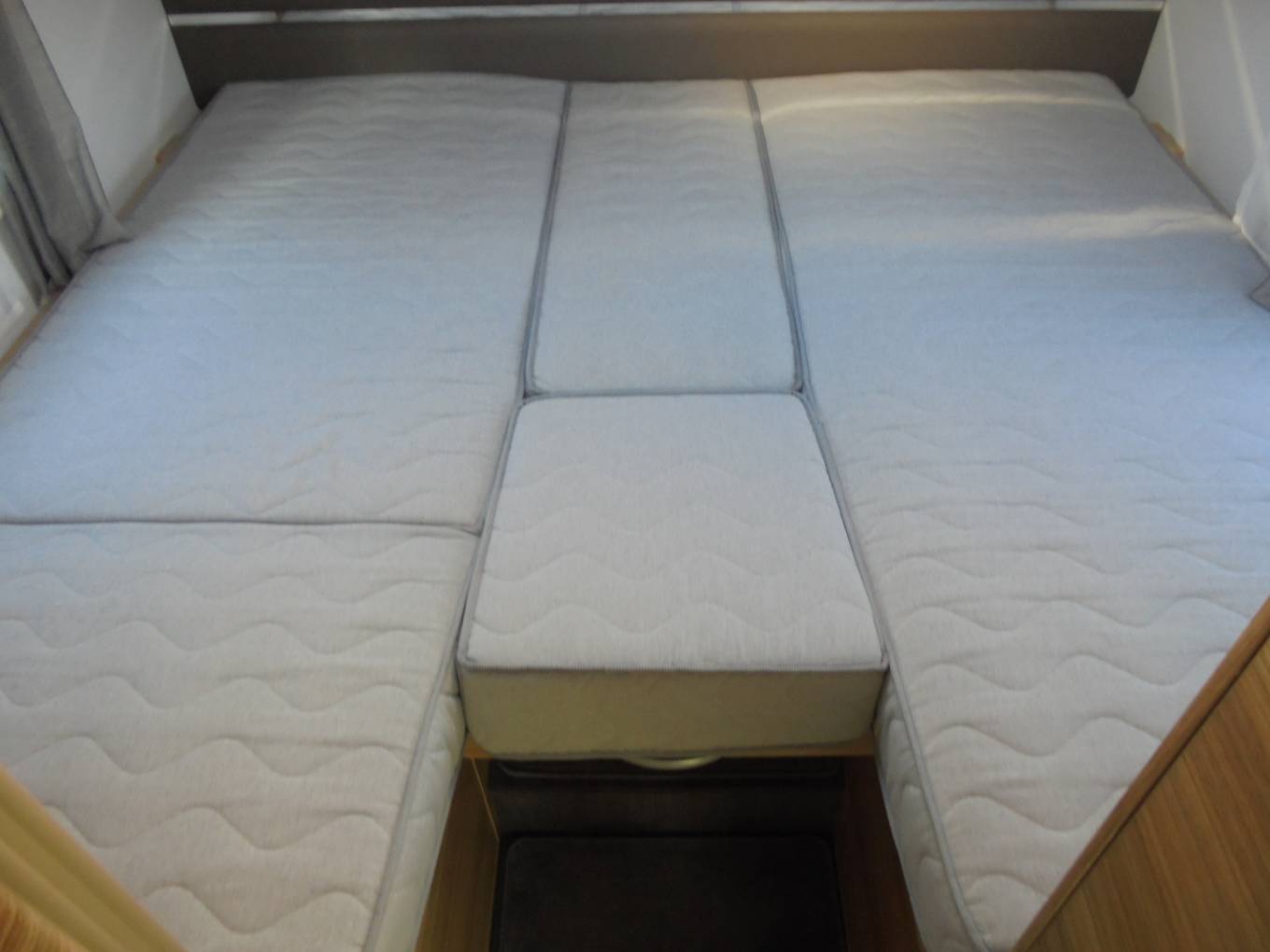 A short walk into a rear bedroom, with a large fixed double bed over the rear