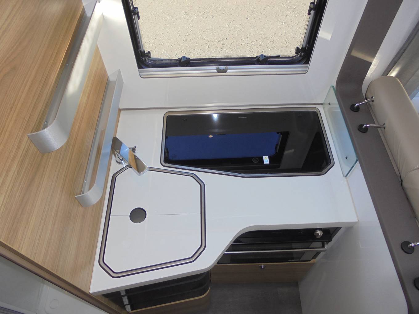 bed, large central lounge which can comfortably seat 5, and dining area. A well-appointed