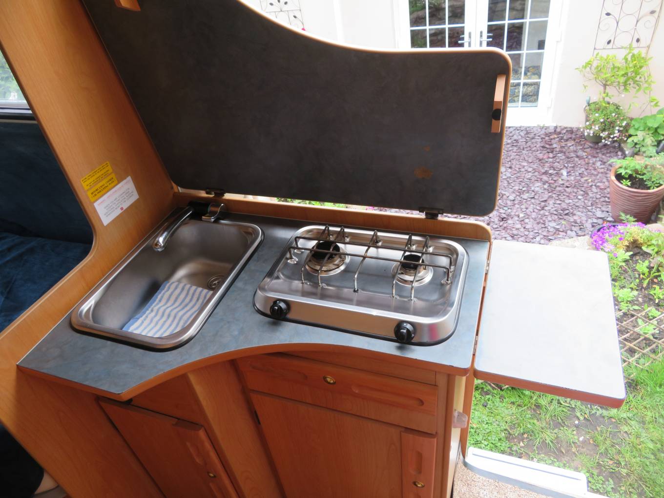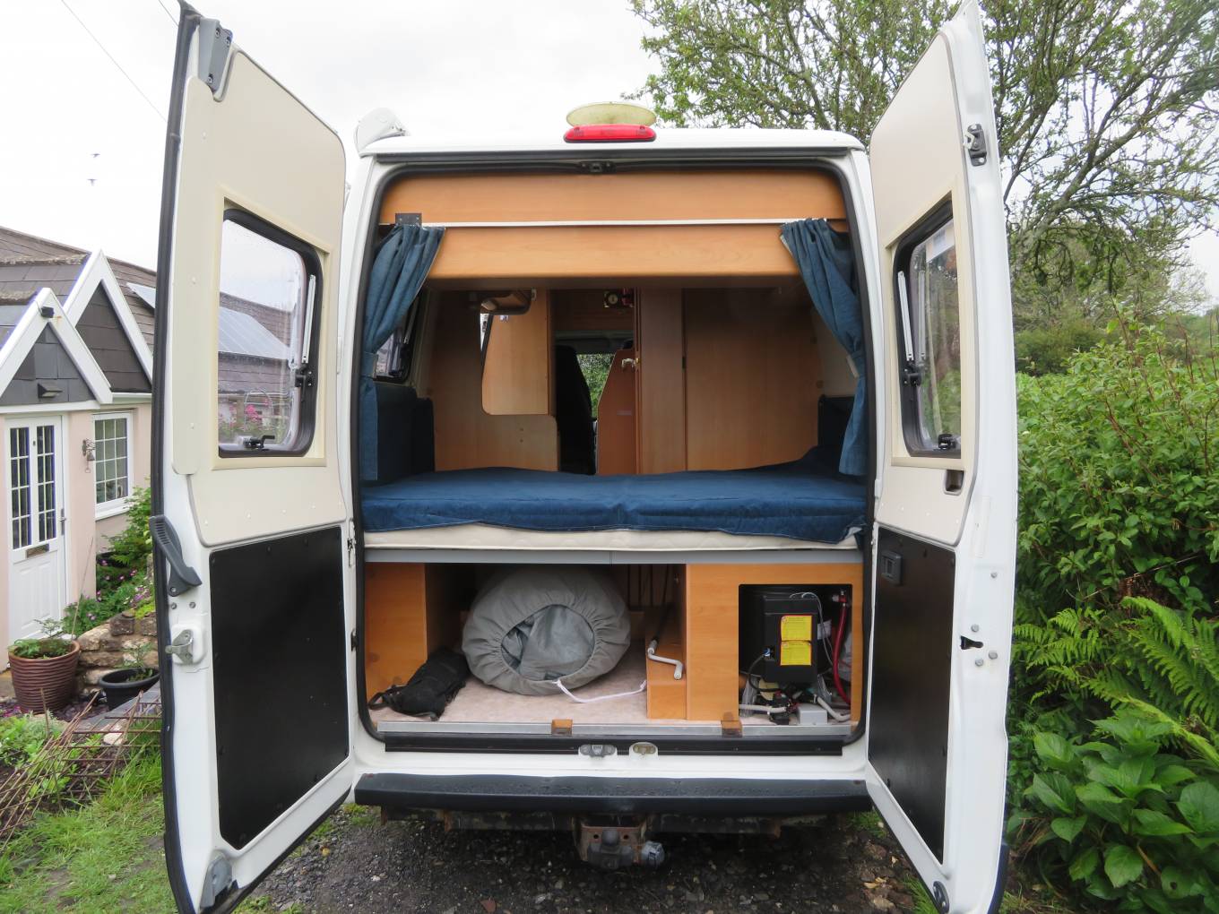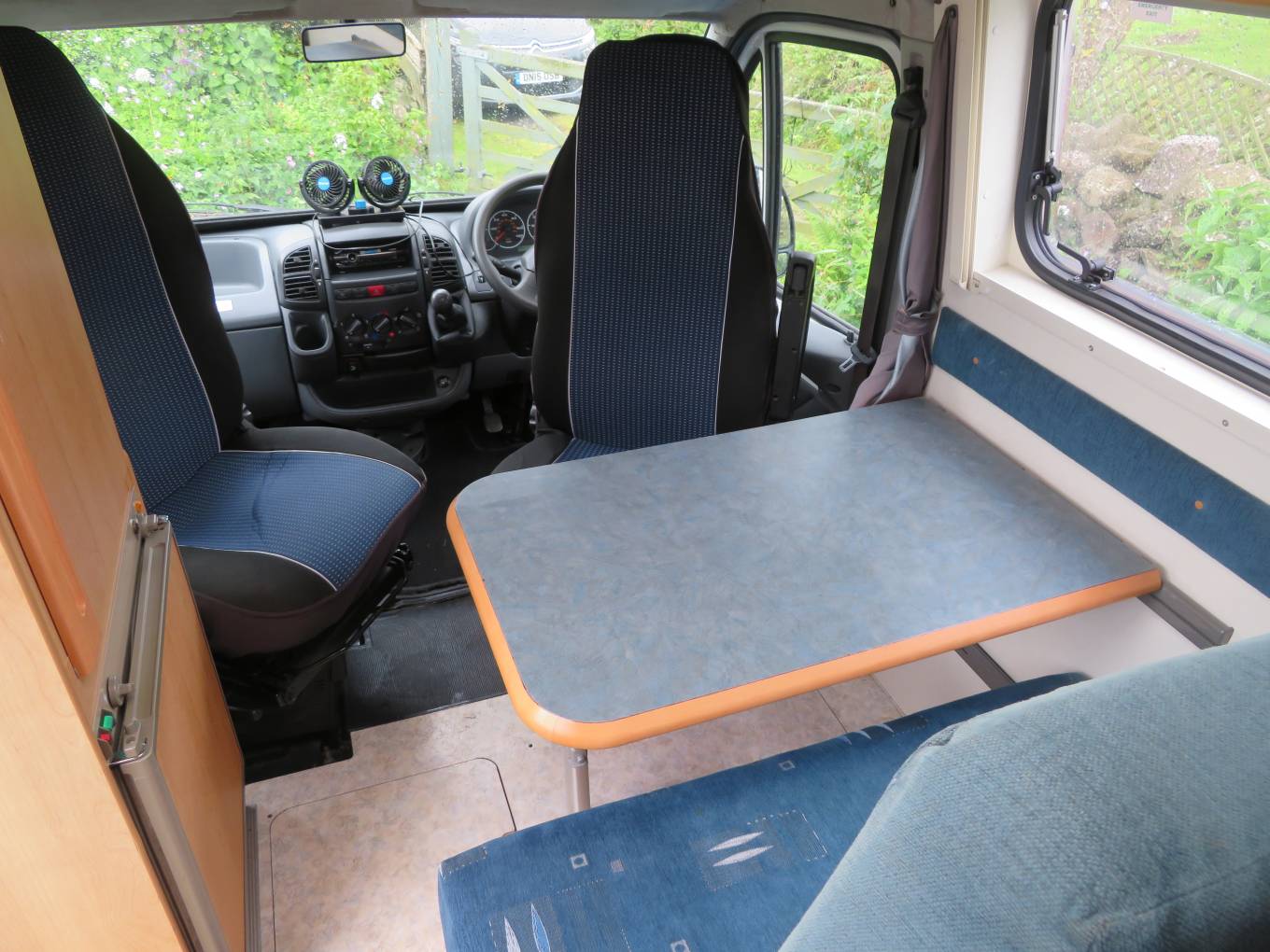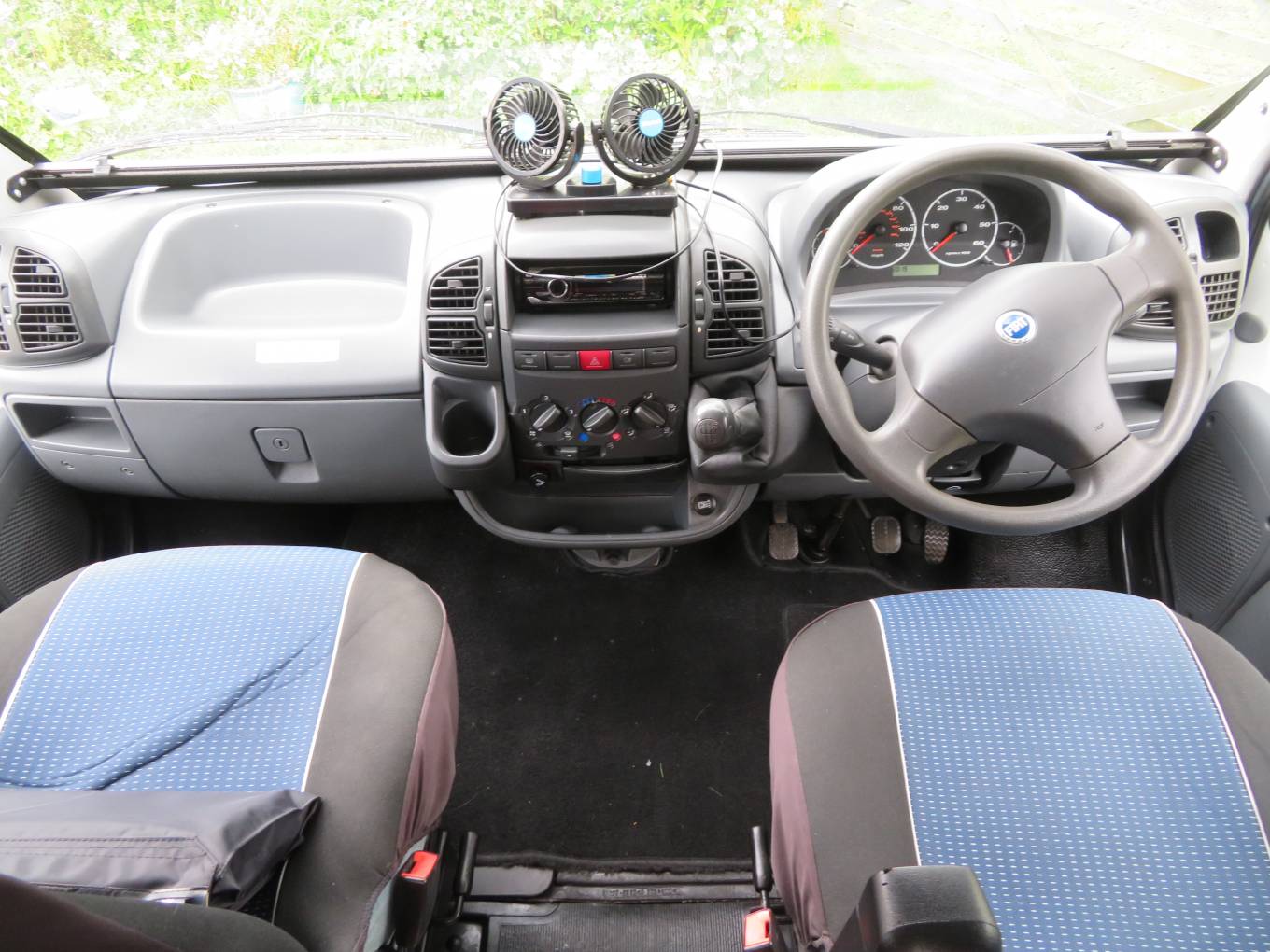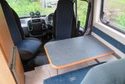 This 3 berth, 4 belt van conversion is based on a Fiat chassis and comes with a 2.3 litre Diesel engine with 5 speed manual gearbox and electric windows and mirrors. Starting at the rear, we have a fixed double bed with under bed storage, moving forwards we have your kitchen area that includes 2 burner gas hob, handwash basin and a 3 way fridge, adjacent to this is your washroom that is comprised of cassette toilet and corner handwash basin with shower tap. At the front, we have a 2 seat dinette with removable table, this area converts to a small single bed, the drivers and passenger seats also swivel to give you ample seating. The van is in great condition with a few age related marks to the exterior. The van has just had a new mot ready to sell.