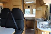 4 people using the 2 front seats that swivel and the forward facing bench seat