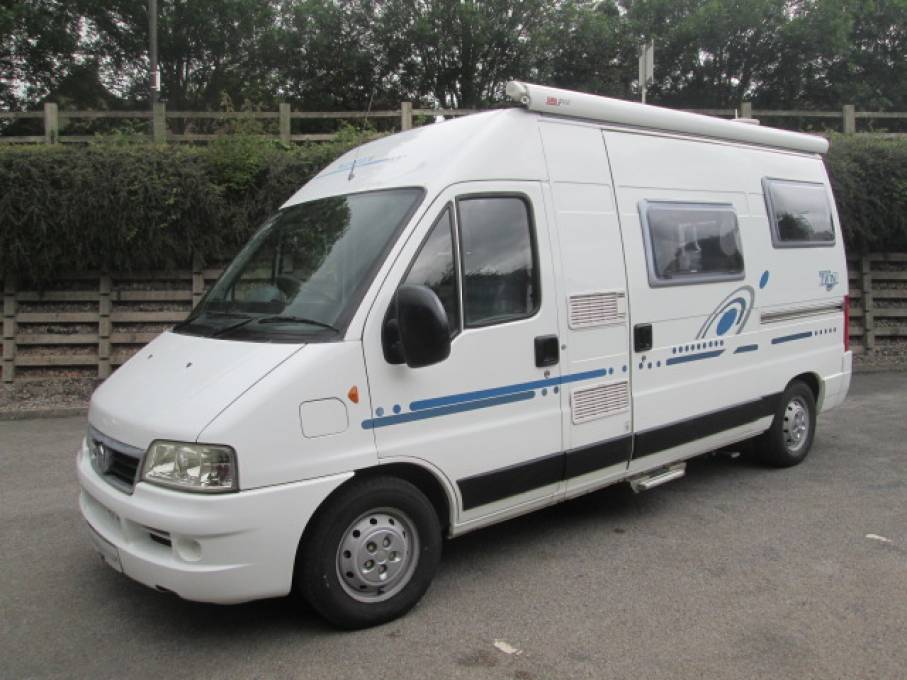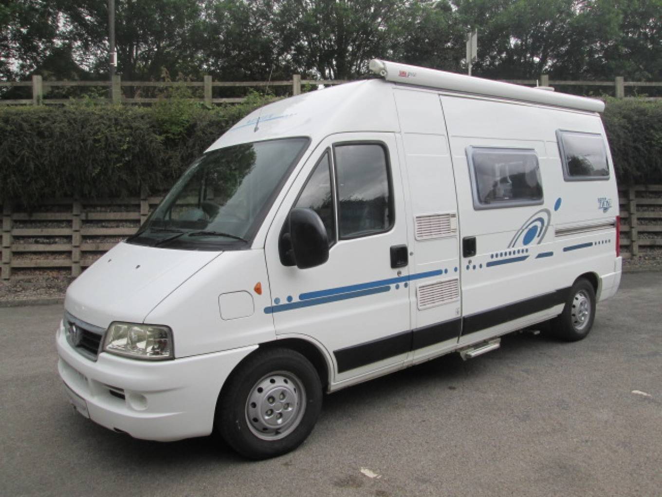 Great Spec including. Transverse Bed, Large Storage Area, Swivel, Drivers Seat, Aerial, Roof Lights, Tow Bar, Awning, Gas Bottle, Table, Radio, Electric Step, 4 X Travelling Seat Belts