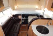 The lounge and dining area is spacious with a long side sofa, two forward facing seats that both have 3-point inertia reel seatbelts, a good sized table and the front seats swivel to face the habitation area. A wind-up sunroof and large windows flood the lounge with plenty of natural daylight plus there is an AVTEX TV with built-in DVD player that slides out from a dedicated locker.