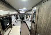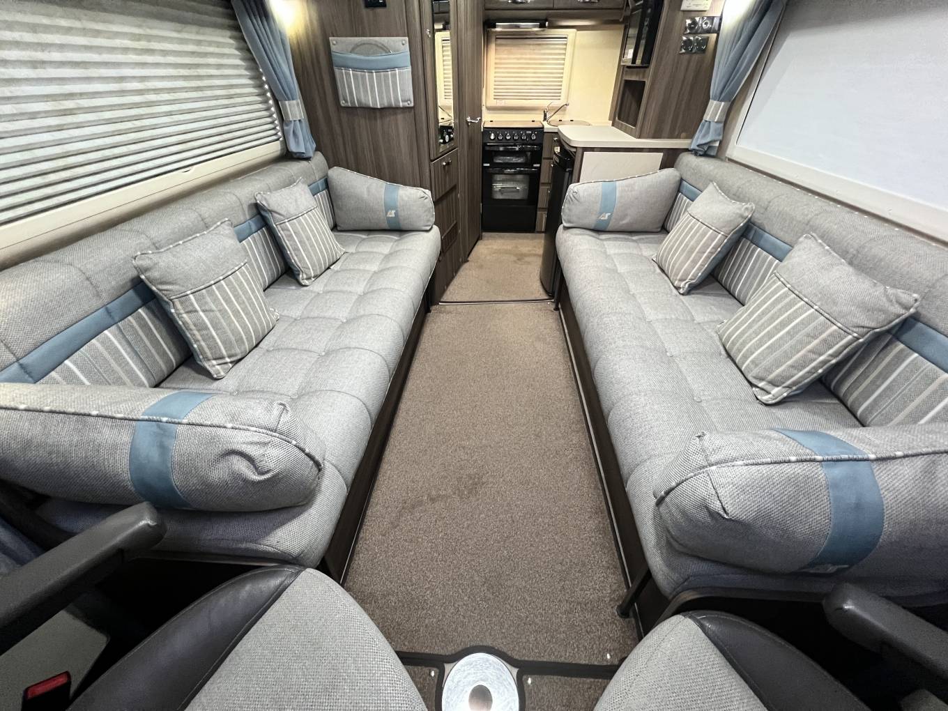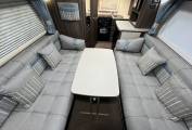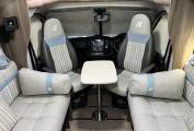 The spacious lounge is across the centre of the motorhome consisting of two inward facing six foot settees and twin swivelling Cab Chairs.
