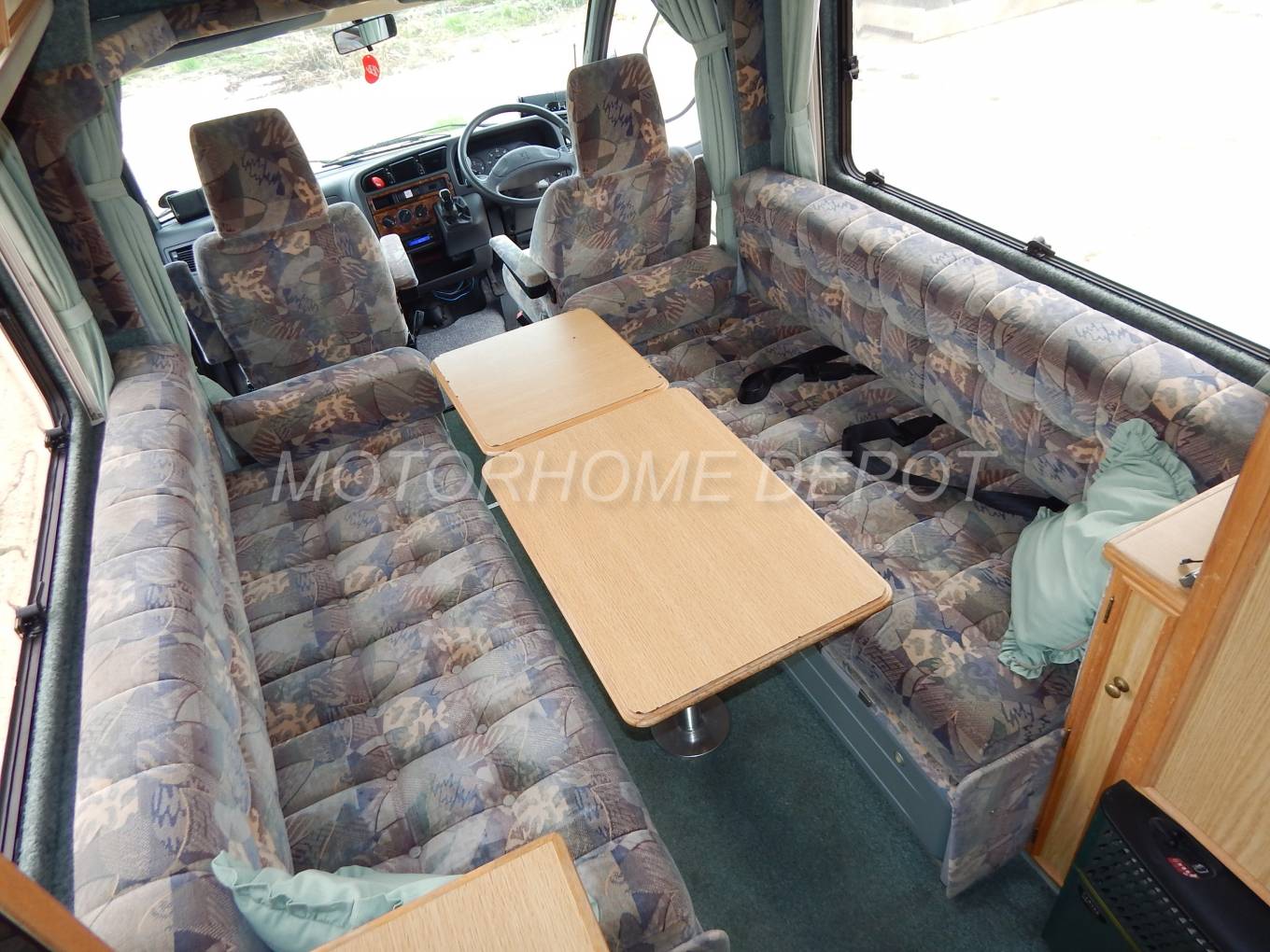 The cab has a Sony CD Tuner fitted with speakers mounted on the dash, the passenger seat swivels to face the habitation area, plus there are privacy curtains to section off the rear of the motorhome.