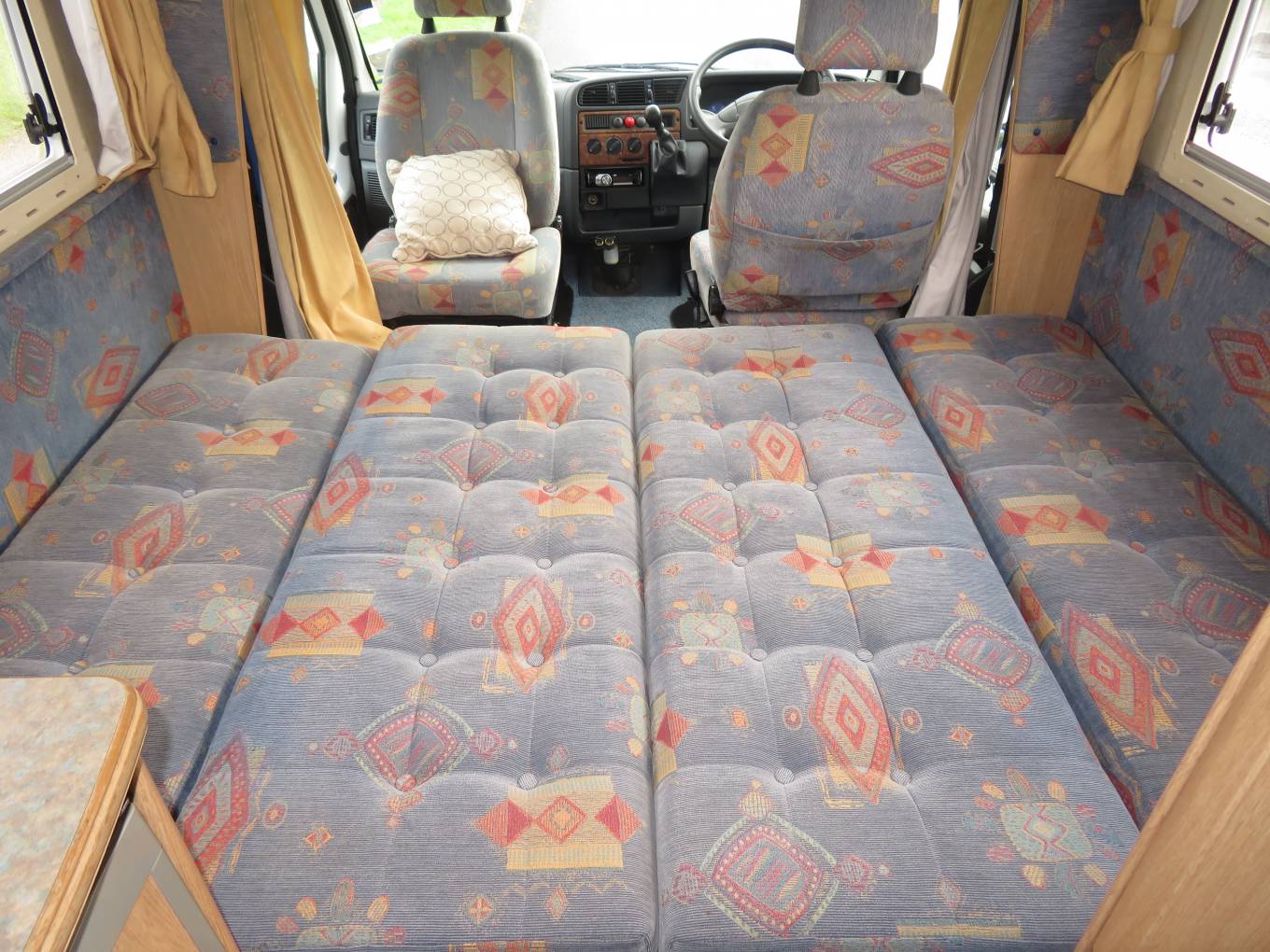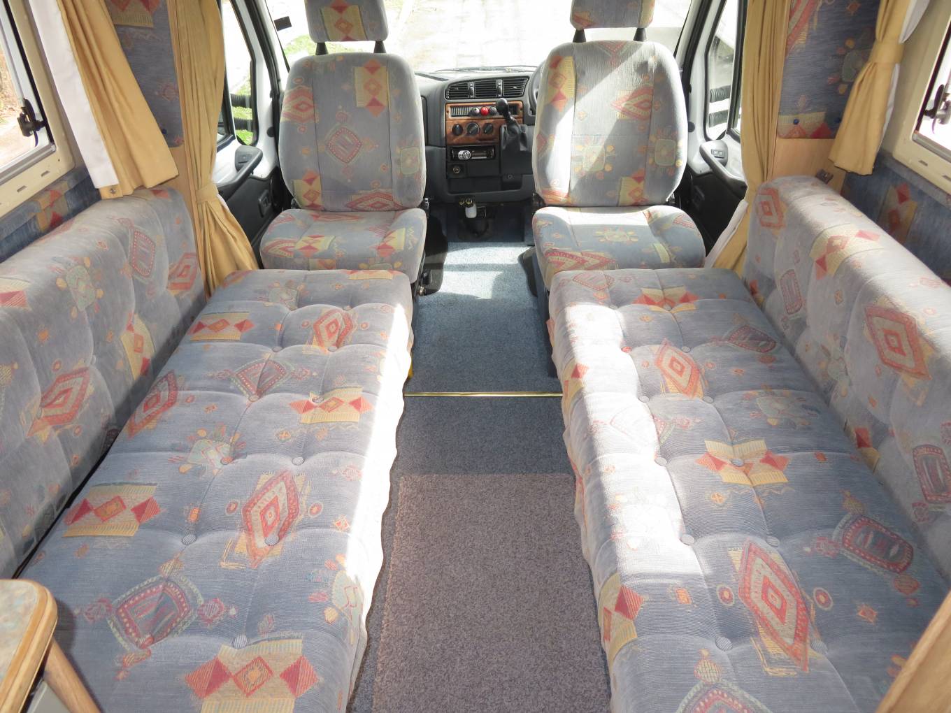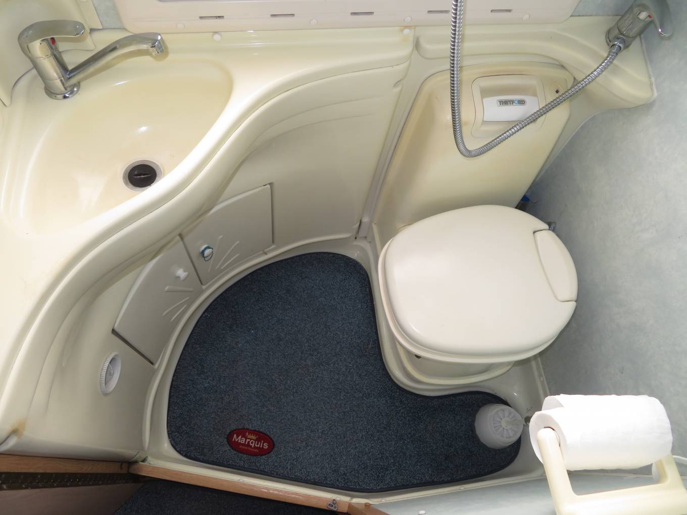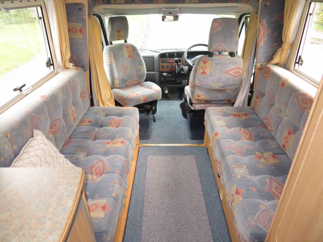 The motorhome is extremely comfortable to sleep in with the two side sofas easily folding down to make a large double bed. It is possible to use these sofas as two single beds by turning the front seats around. There is a decent sized washroom at the the back with flush cassette toilet and sink. The motorhome does have a shower but it is not used by the current owners as one of the drain holes needs a simple repair. They have never wanted to use the shower so was not an issue but can easily be done. Heating and hot water are provided by a Truma boiler.