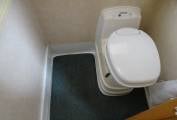cassette toilet and handbasin. Beyond