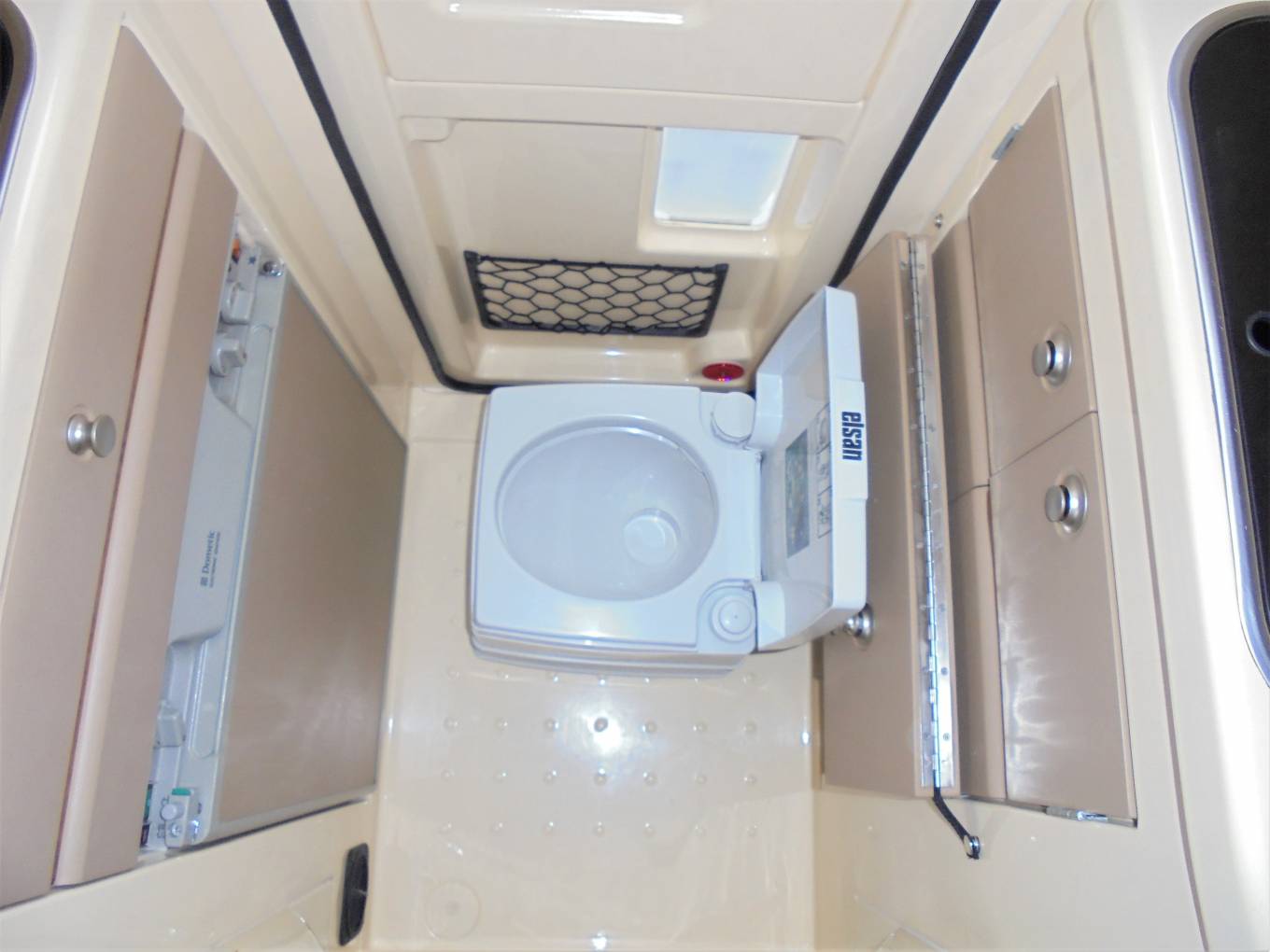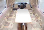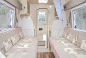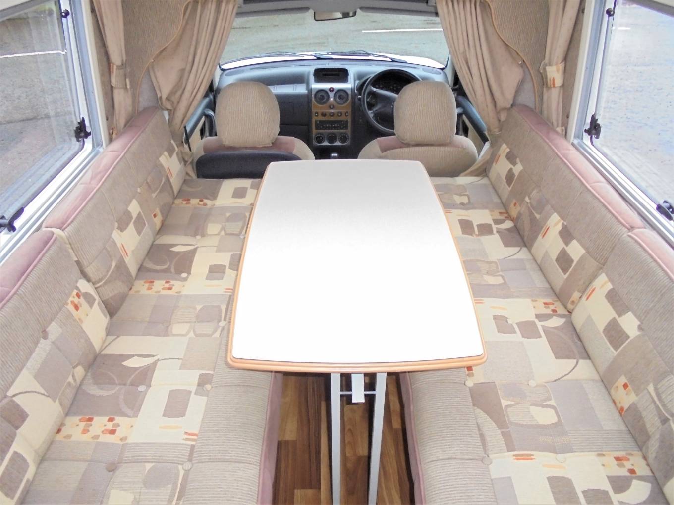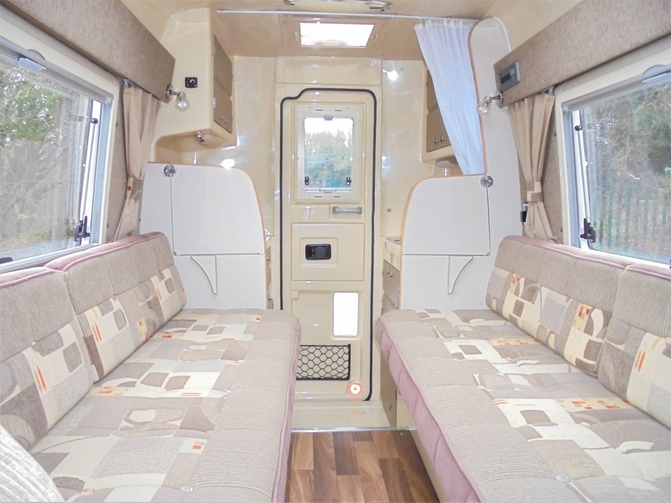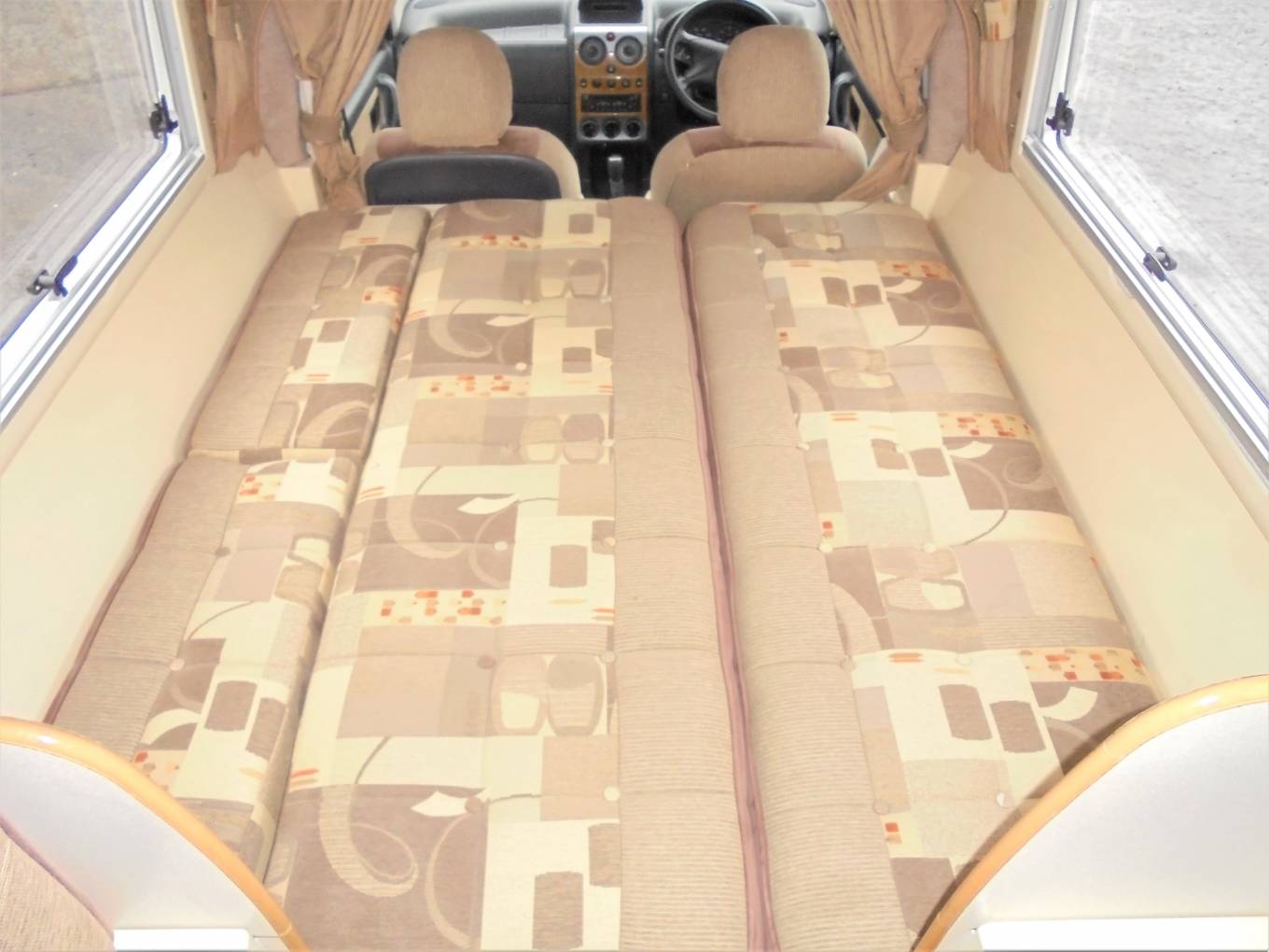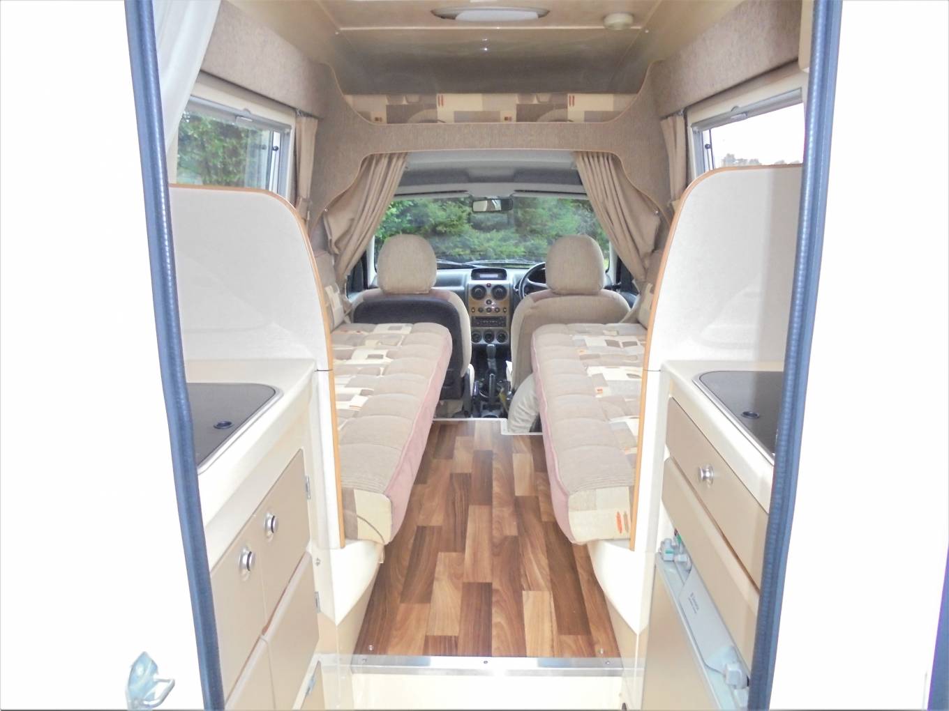 The front area provides open plan bench seats that can be used as 2 single beds or large double in the evenings.