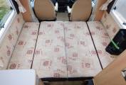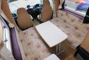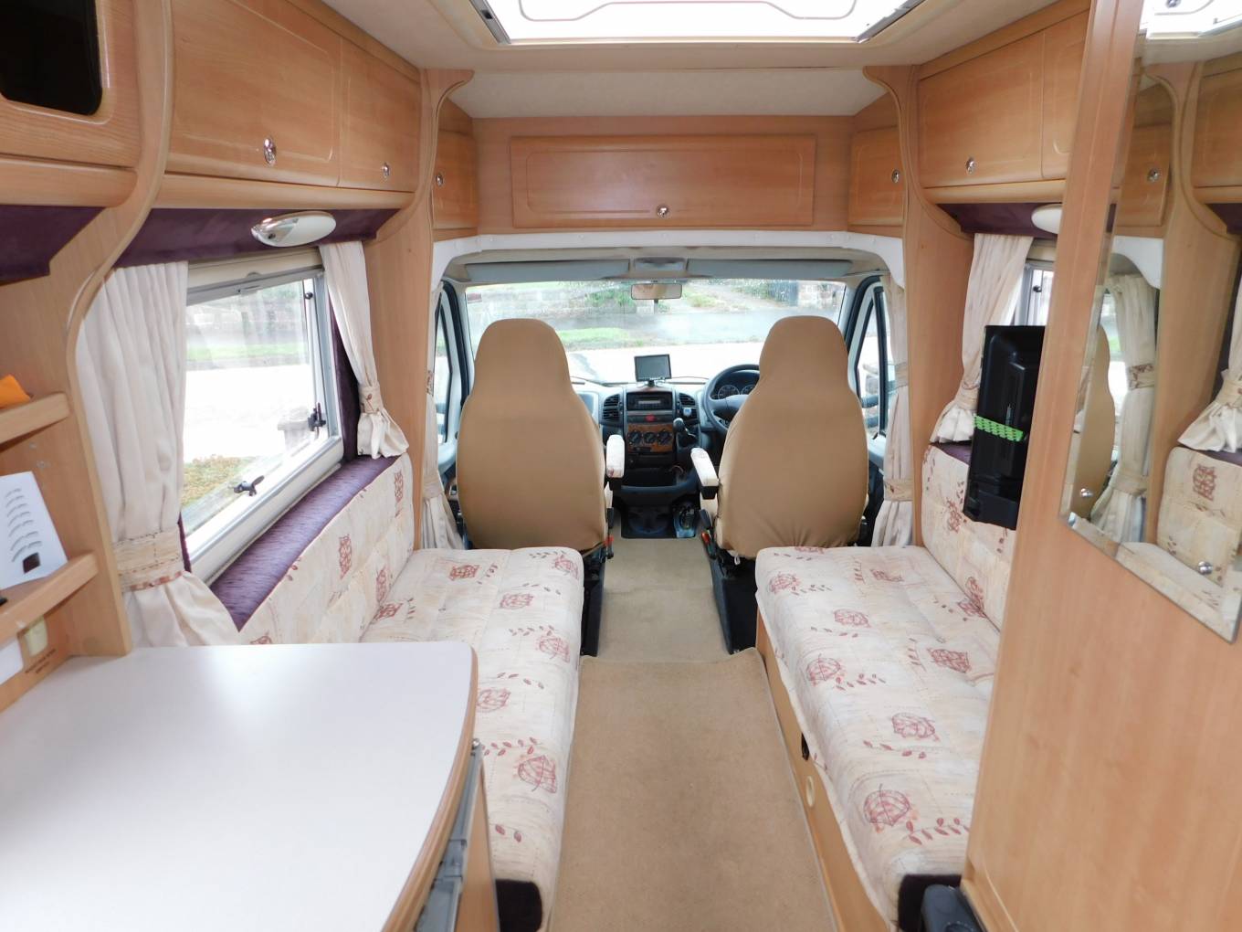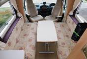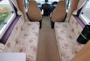 - The lounge has two parallel sofas that draw together to make up a large double bed in the evening, long enough for the tallest of adults as it's nearly 7 foot in length. A large HEKI II sunroof floods the lounge with natural daylight, upper aircraft style lockers and under-seat storage space available, plus a large dining table is stored away in the wardrobe when not in use. Both front seats swivel to face the habitation area, a new CELLO TV is mounted on the wardrobe wall and has a built-in DVD player.