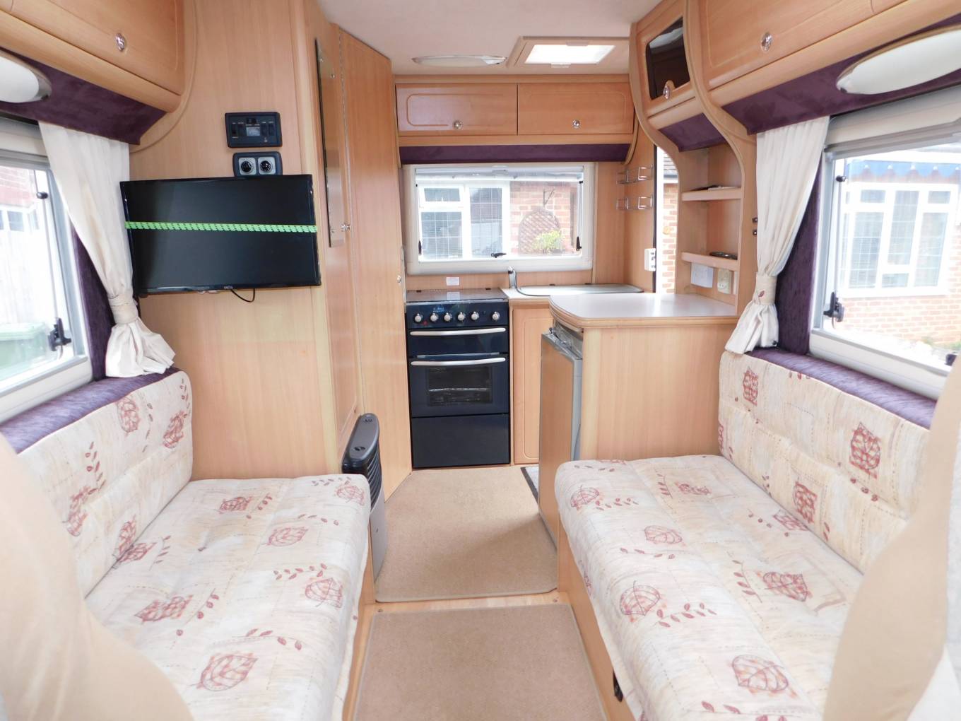 - Truma gas and electric powered blown-air central heating and hot water heating, wood effect flooring with loose fit carpets, black-out blinds and fly-screens throughout.