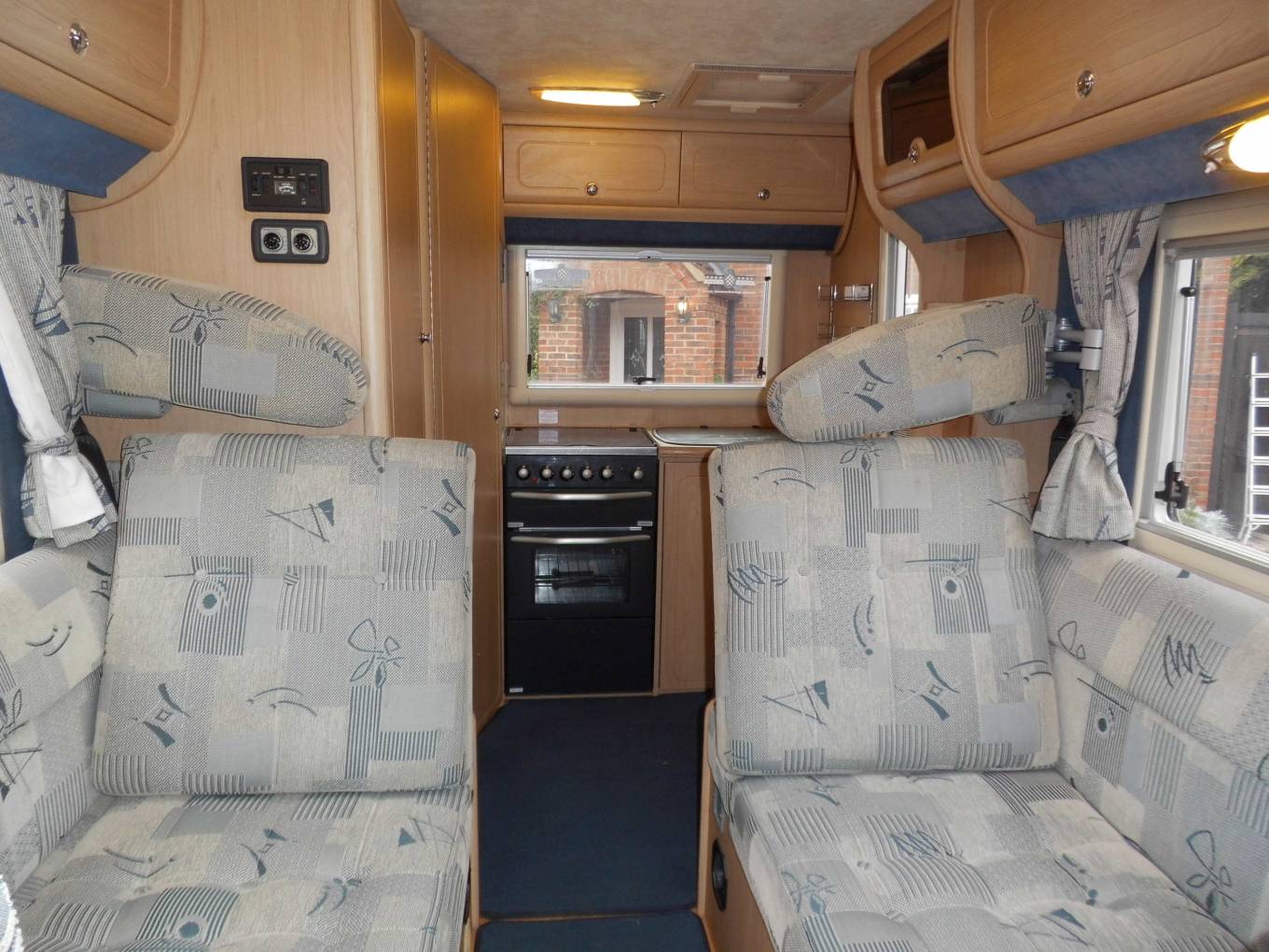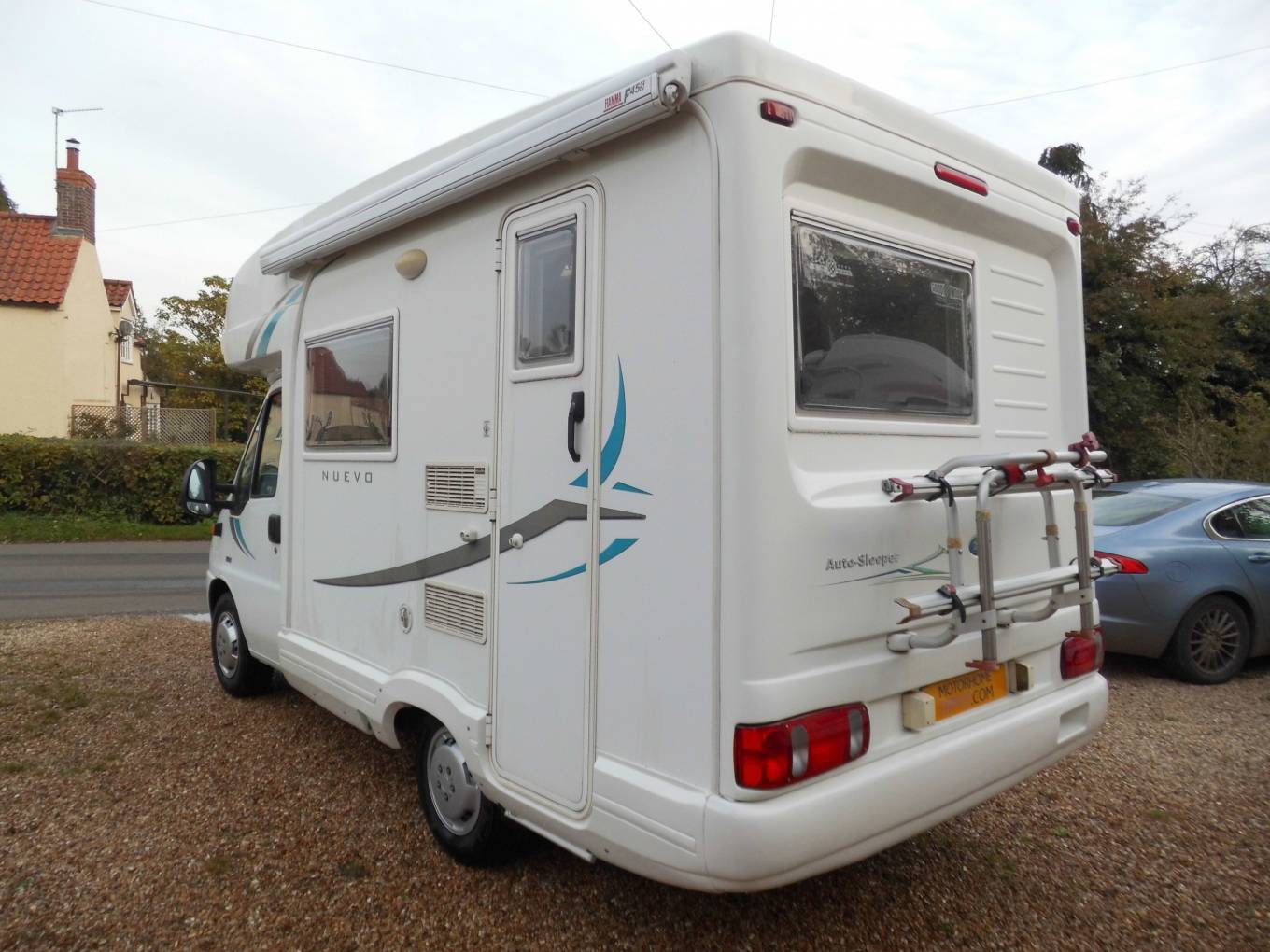 Here we have the very sort after 2004 award winning design Auto-Sleeper Nuevo 4 berth and 4 belts. This compact and very practical vehicle is ideal for a family looking for a 4 berth also this motorhome is very easy to manoeuvre at only 5.5m long, this can go most places and you can still turn it around easily. It has a 2.0L engine, manual 5 speed gearbox, and in very good condition. This motorhome feels very spacious inside with a fantastic layout combination, it can have 2 forward facing belted seats that easily change in to 2 long sofa's that convert to either two singles beds or a large double at night. There is a large double bed above the cab. This motorhome also has plenty of storage lockers and a very large wardrobe. There is a fully equipped kitchen at the rear that includes full oven with grill, fridge with small freezer compartment, 3 gas rings and one electric ring. There is a really good size washroom with a shower. This is a very good length motorhome that makes it so easy to drive and park. Included in the sale is a Safari room, bike rack for two, removable carpets, Comprehensive service history, stamped service book, new habitation certificate, MOT 22/11/2021 new service, 3 month warranty, two sets of keys. Located in Norfolk. For more information, extensive photo file containing approximately one hundred pictures for an in depth virtual tour of the vehicle before you come to view, and to book a viewing, please call Simon and Maria on 01603 381972 or 07757 221350. VIEWING BY APPOINTMENT ONLY. Free 14 day drive away insurance is available with this vehicle. We welcome buyers from across the UK and Europe, low cost delivery is available.