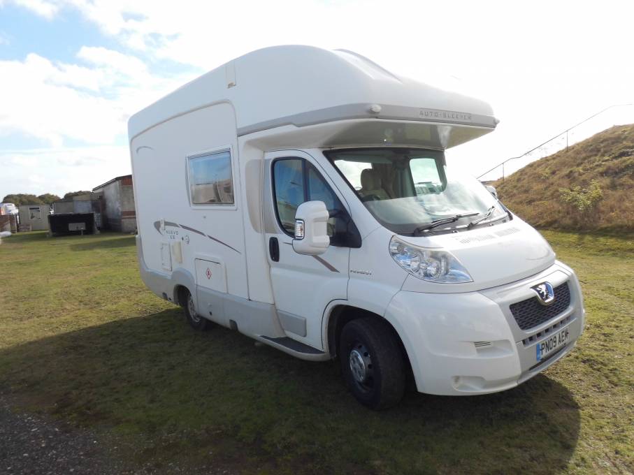 Auto Sleeper Nuevo 2.2 4 berth motorhome,4 berth coach built motorhome built on the Peugeot Boxer 2.2L engine. Over Cab bed, sofas that provide two single beds, several options of layout, 2 x dinning tables, awning, solar panel, 2 sets of keys, Habitation report with no issues. Electric Windows/Mirrors/Central Locking, CD Radio, Cab Air Conditioning, Oven, Grill, Blown Air Heating, 3 Ring Gas Hob, Electric Ring Hob, Fridge/Freezer, Loose Carpets, Bike Rack, TV Aerial, Panoramic Roof Light. 2 new rear tyres good service history. Solar Panel, cruise control air conditioning air suspension.