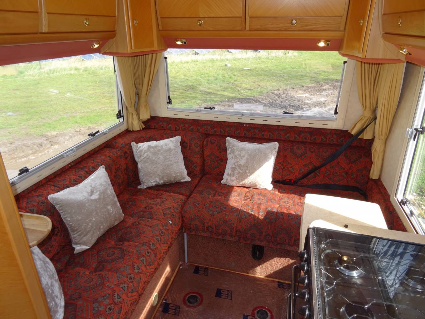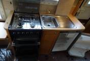 In the kitchen area you are fully equipped with a full sized oven and grill, 4 gas ring hob, sink and drainer and 3 way fridge.