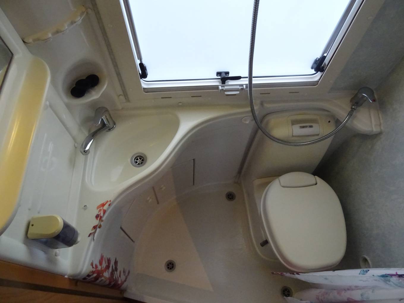 You have a combined bathroom with cassette toilet, sink and shower.