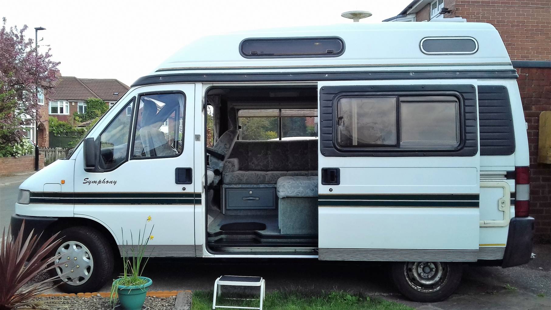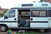 Call with any questions 01423 609985. This is an Autosleeper Symphony campervan first registered in 1997, overall it has travelled 79903 miles in total and this sleeps 4 people combined with the 3 travelling seatbelts. This has been very well looked after and would be great for a starter campervan. Internally the front single seat and bench seat converts into a double while above in the roof area it has another spacious double bed. To the rear of the campervan you will find a useful kitchen which includes an oven, grill, 4 gas burner hob and a fridge. If you are new to motorhoming this really is the ideal van for you. Included in the asking price is a drive away awning, all the original crockery, gas bottle and electric hook up lead. It has recently had the timing belt changed at 78000 miles, had a new air filter, coolant bottle and break shoes, cylinders and starter motor changed. It is in great condition both inside and out considering the vehicle age and should be seen at the earliest opportunity near York, North Yorkshire. Part Exchanges welcomed on this vehicle, for further information and photos please call us on 01423 609985 quoting reference 94743.