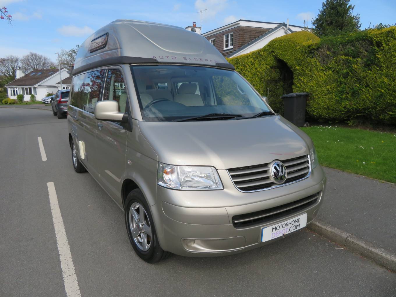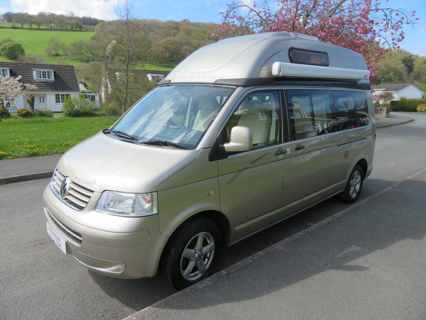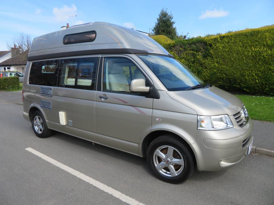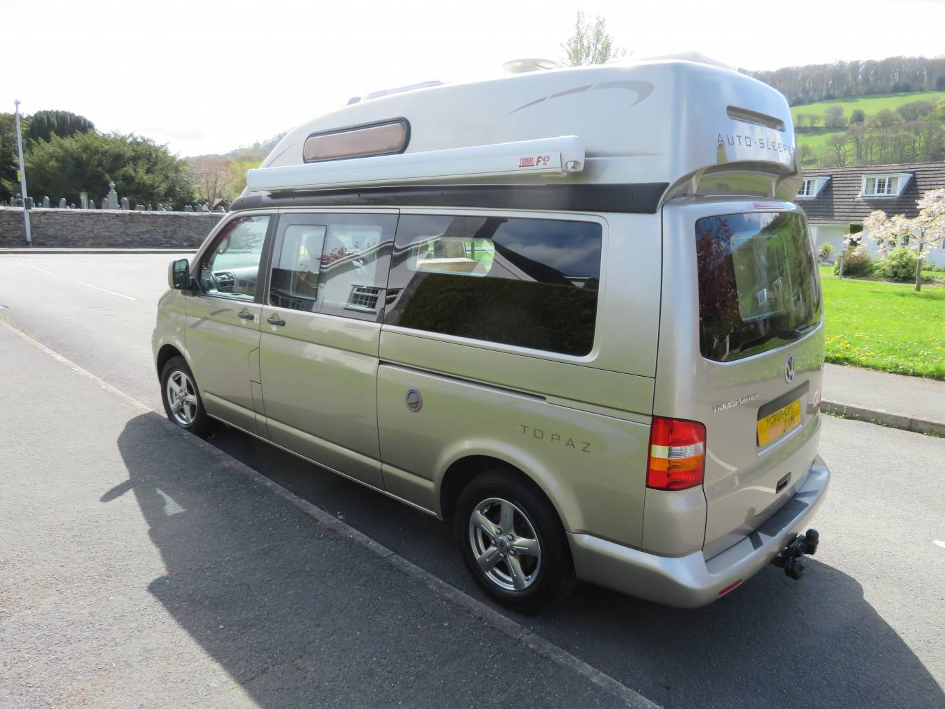 Motorhome Depot North Wales Present a lovely 2009 Auto sleepers Topaz, This very desirable 2 berth, 3 belt, van conversion is based on the VW T5 Transporter, 2461cc 130 TDI engine with 6 speed manual gear box. With one previous owner, the mileage is good with just over 45,400 miles on the clock, it has a GVW of 3200kg and comes with good service history.