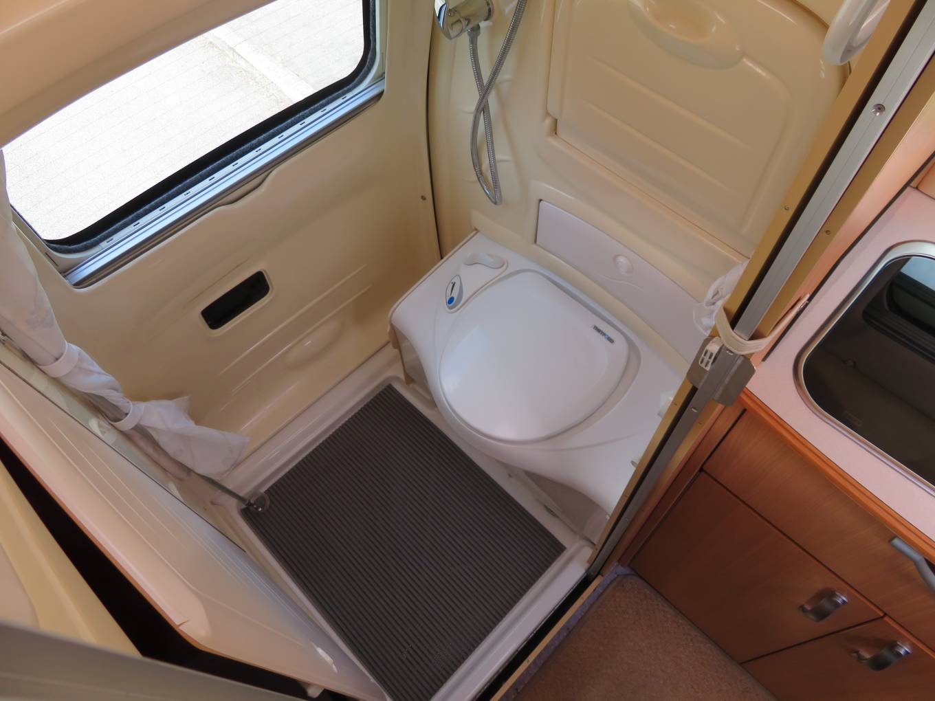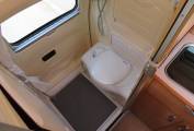 Starting at the rear of this compact camper we have the washroom area that boasts bench style cassette toilet, space saving drop drown handwash basin and shower controls.