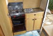 Kitchen with Two burner stainless steel cooker and grill and oven below. Alongside
