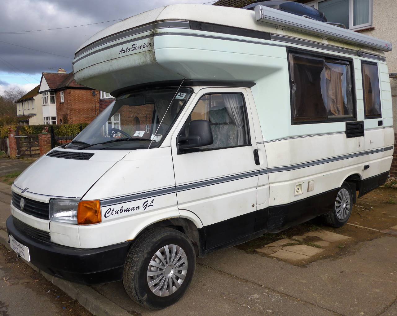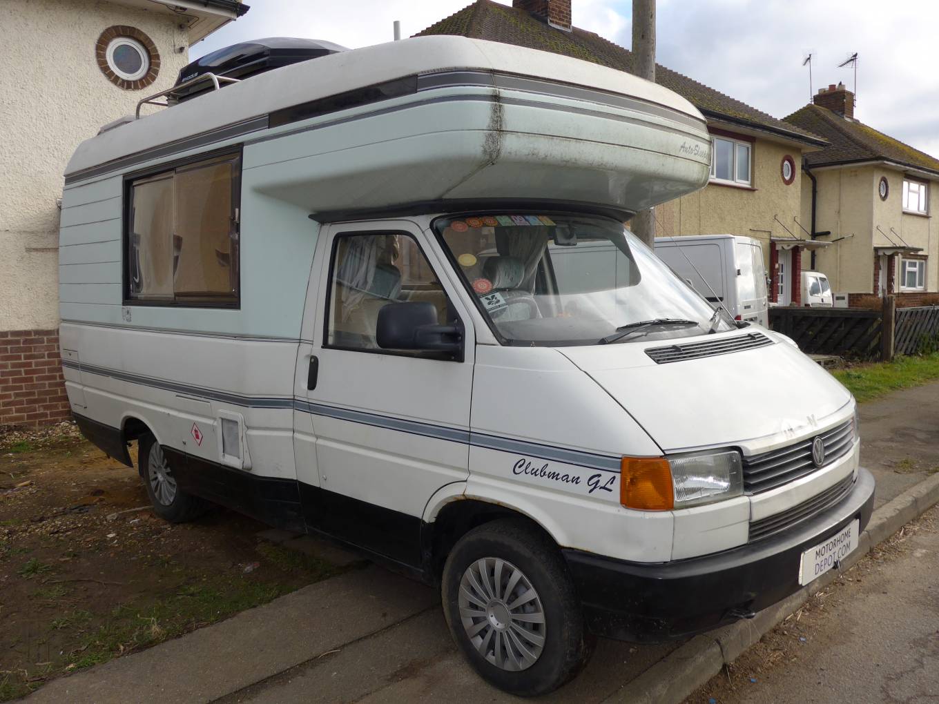 1992 Auto-Sleepers Clubman GL (Grande Luxe) 2 berth one piece fibreglass monocoque body based on the 2.4 Diesel Volkswagen (VW) T4 Chassis Transporter. Just 3 previous owners. MOT unit 31st Jan 2020. New Starter Battery and alternator fitted. Rare opportunity to buy one of these sort after motorhomes at a competitive price. Would suit someone who could provide some love and attention to bring this classic motorhome back to its former glory.